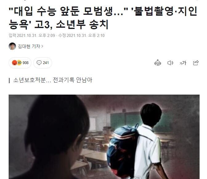 "대입 수능 앞둔 모범생…" '불법촬영·지인능욕' 고3, 소년부 송치