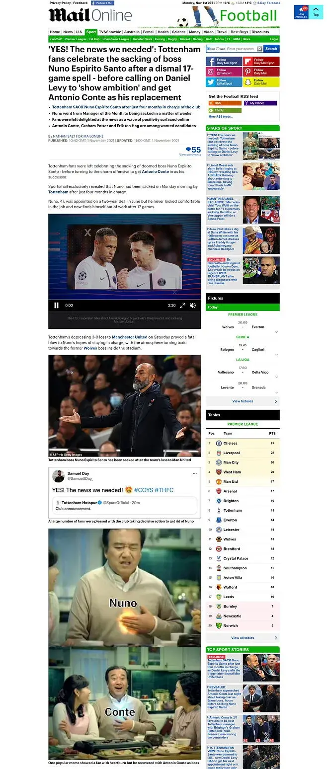 토트넘 감독이었던 누누 경질 후 콘테 선임 가능성이 있다는 소식에 사용ㅋㅋㅋㅋㅋㅋㅋㅋㅋㅋㅋ