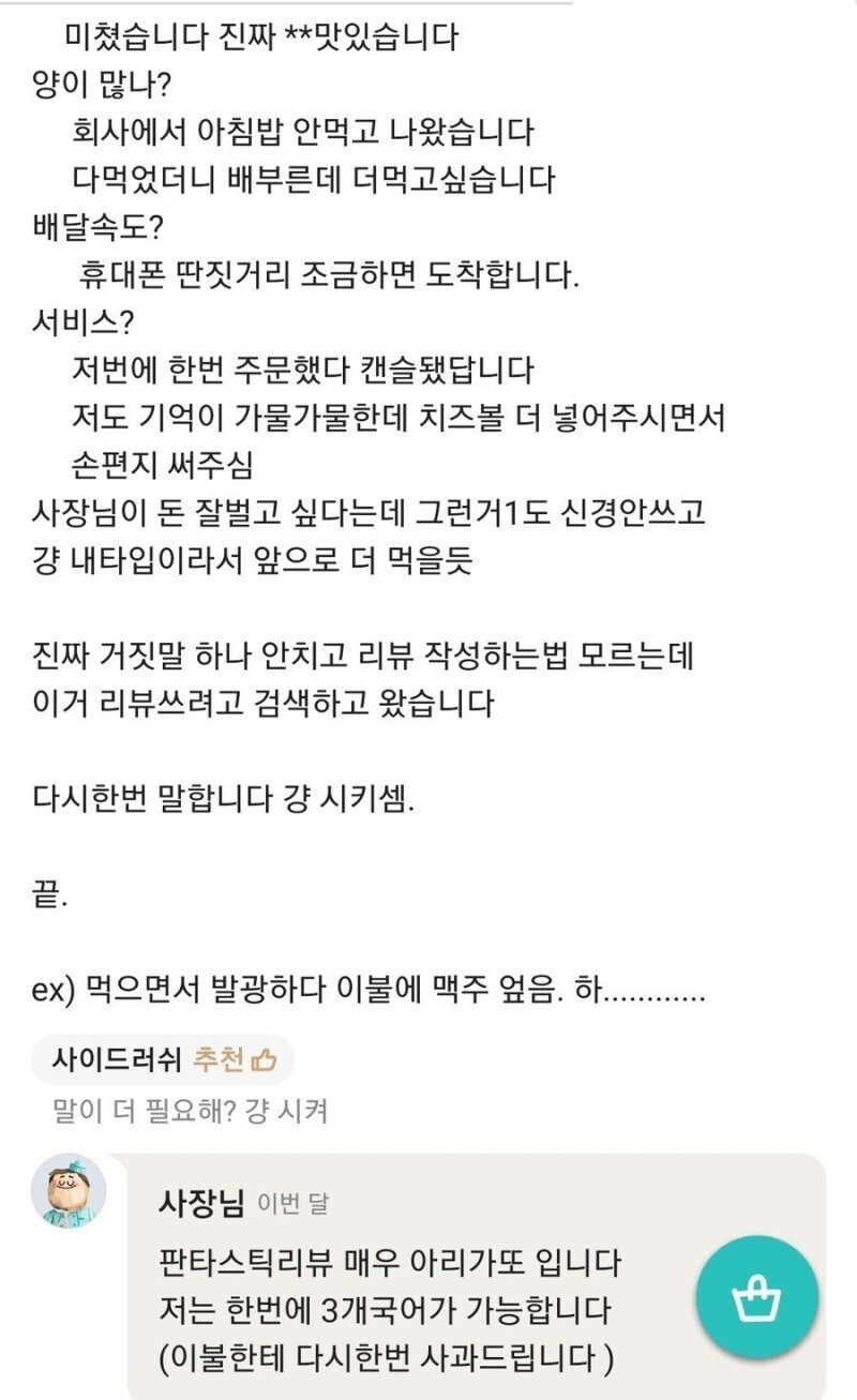 └ 근데 진짜로 가게 입장에선 알바생 실력에따라 음식맛이 달라져서 고민일듯
