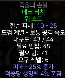 | 죽음의 손길 | 워 소드 세트 아이템 | 버림 | |