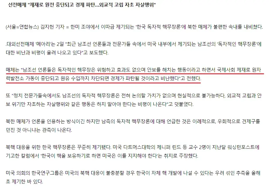 한국 핵무장론에 대한 북한 반응.jpg