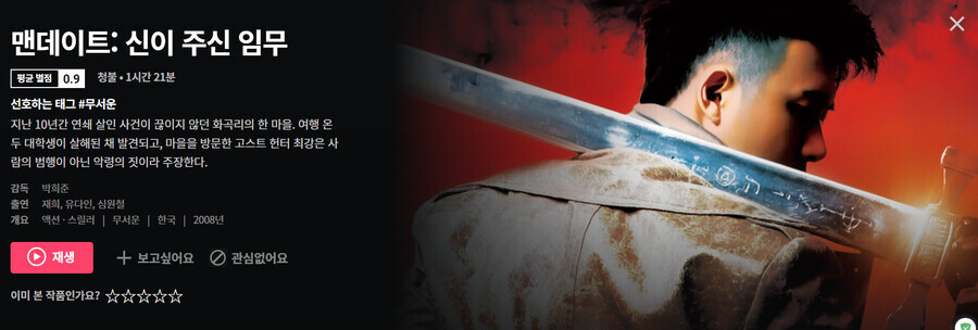 - 나도 해외 평점 1~4점대수준인 호러영화들 보려고 왓챠유지중