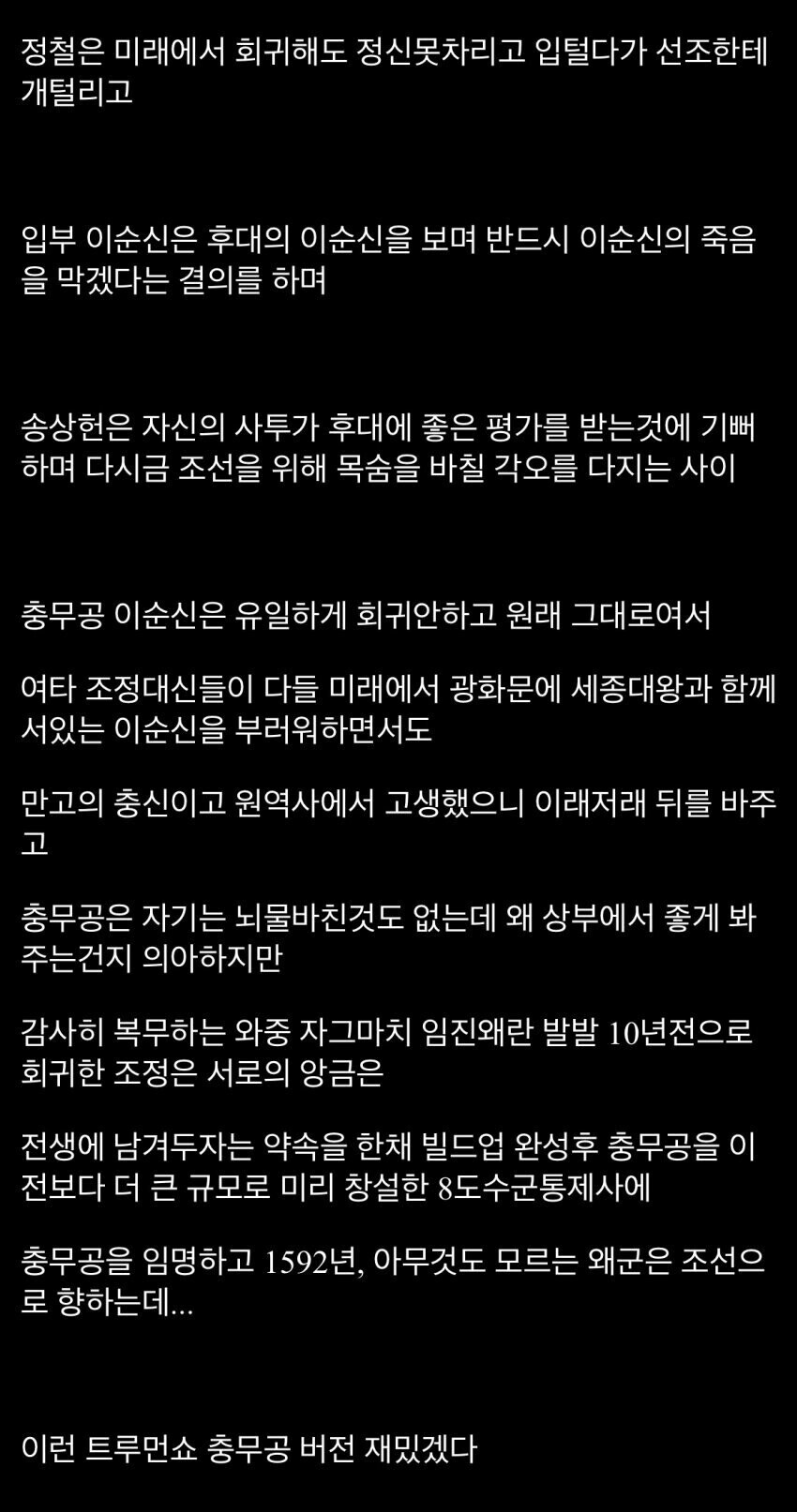 - 그런데 ㅈ본이 너무 쎄서 주인공 무리가 위기에 닥친순간 경상 우수영 병력을 살려놓은 원균쉑이 뻘쭘해 하면서 대군을 몰고오는 거지.