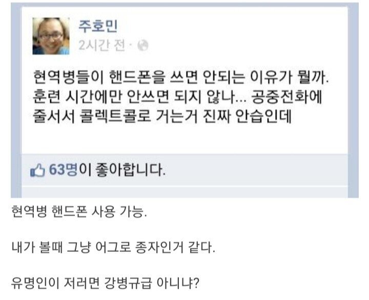 - 부대 내 기밀유출이 문제라고 떠들더만 정작 그럴 때도 간부들은 휴대폰 잘만 씀 ㅋㅋㅋㅋㅋㅋㅋ