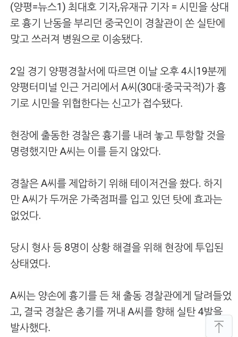 경찰에게 흉기들고 달려들다 실탄 맞은 중국인.news