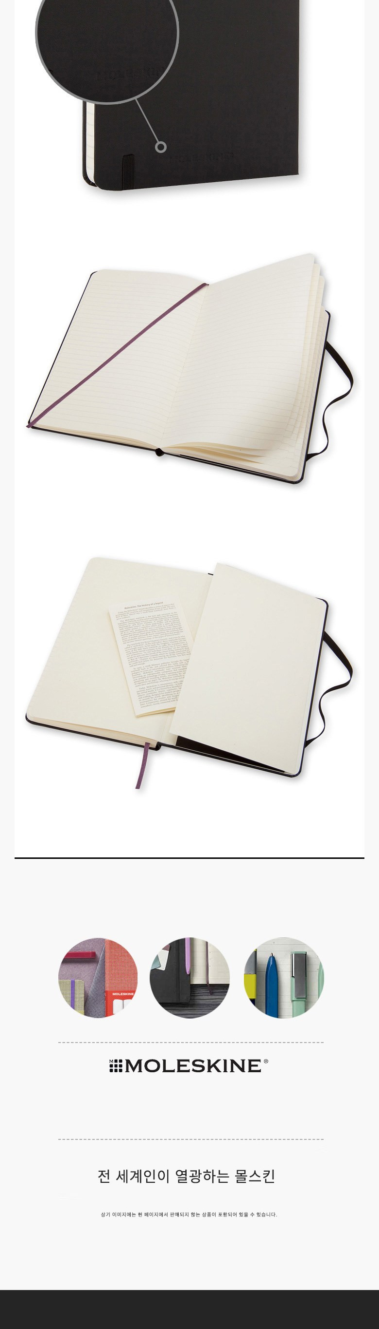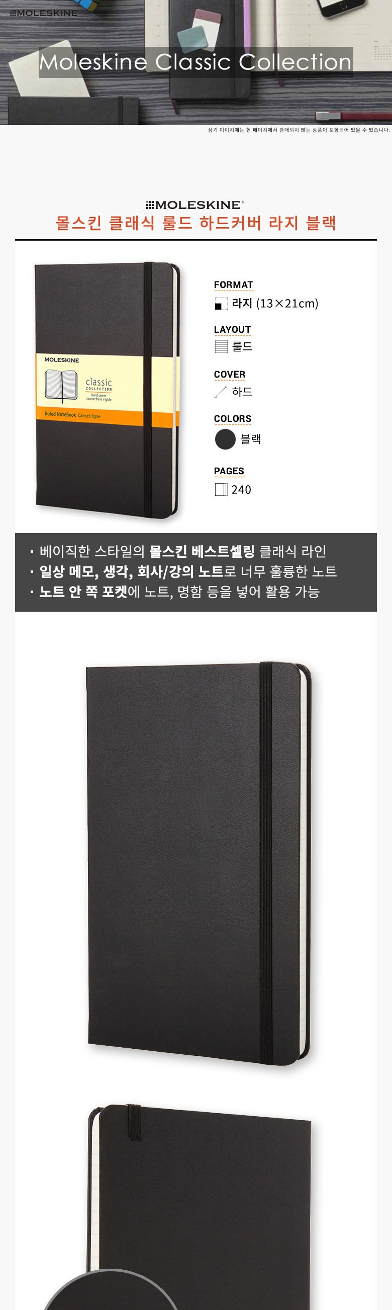 몰스킨 클래식 룰드 하드커버 노트 라지, 블랙, 1개