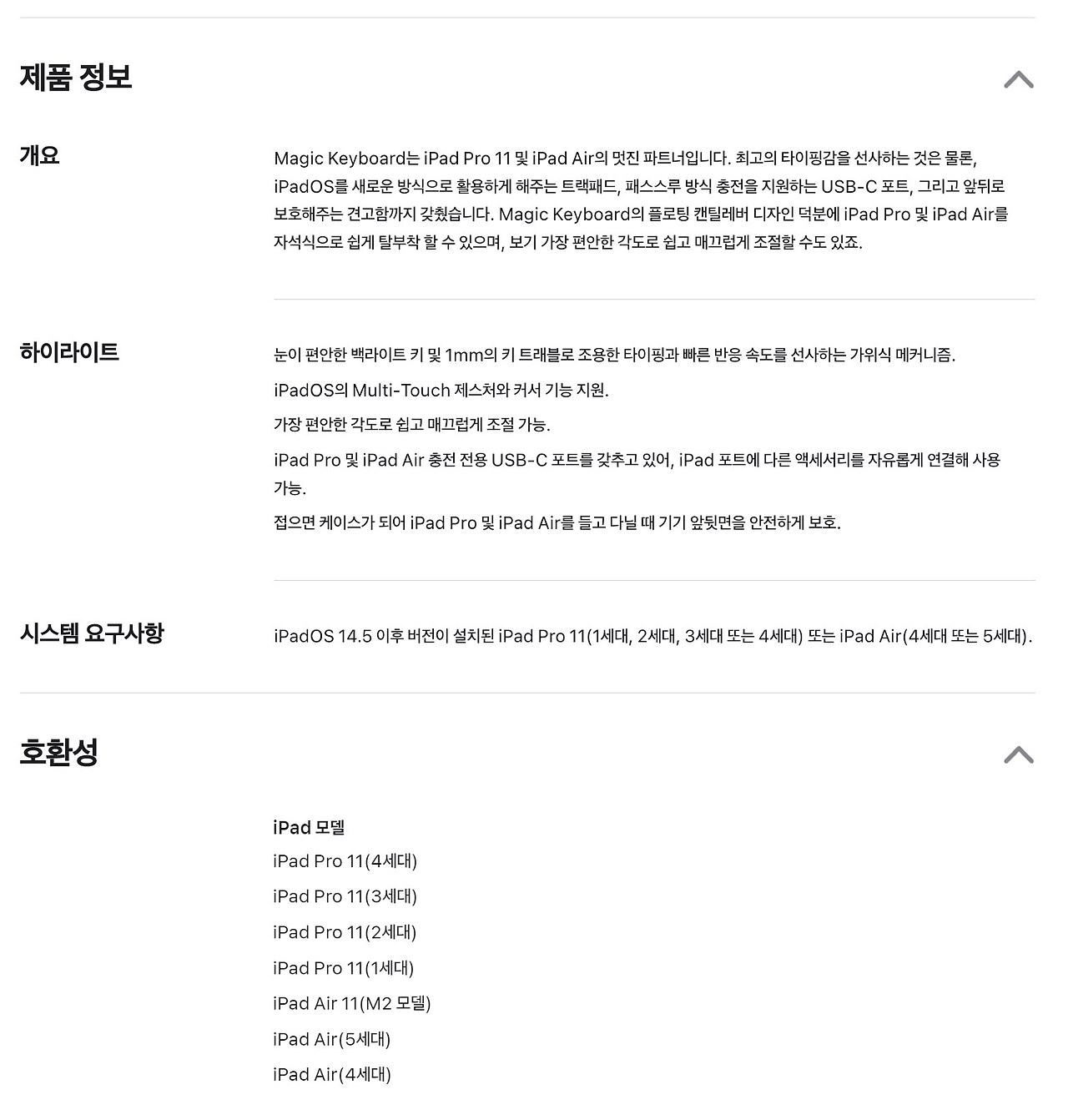 Apple 정품 매직 키보드 iPad Pro 11 4세대/iPad Air 5세대용, 블랙, 한국어