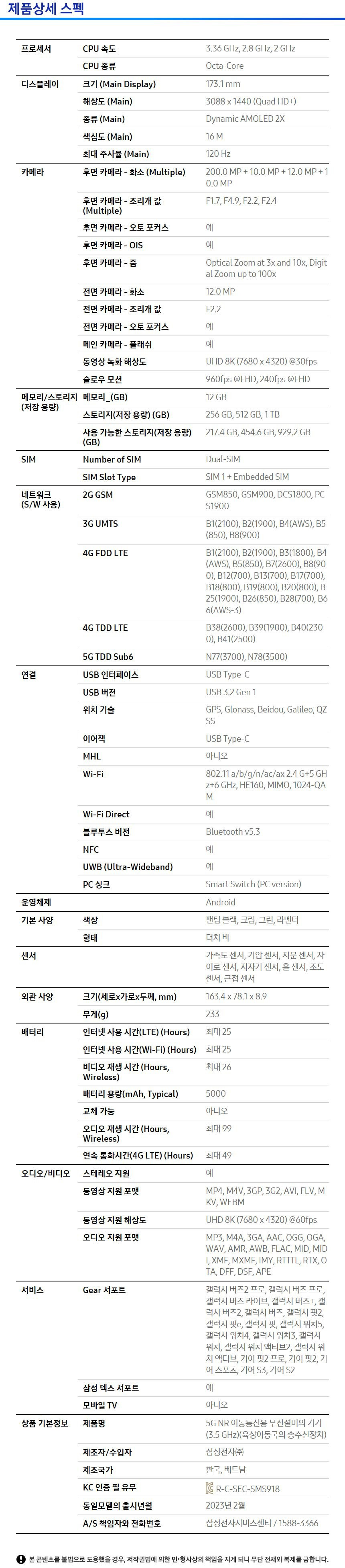 삼성전자 갤럭시 S23Ultra 자급제, 팬텀블랙, 512GB