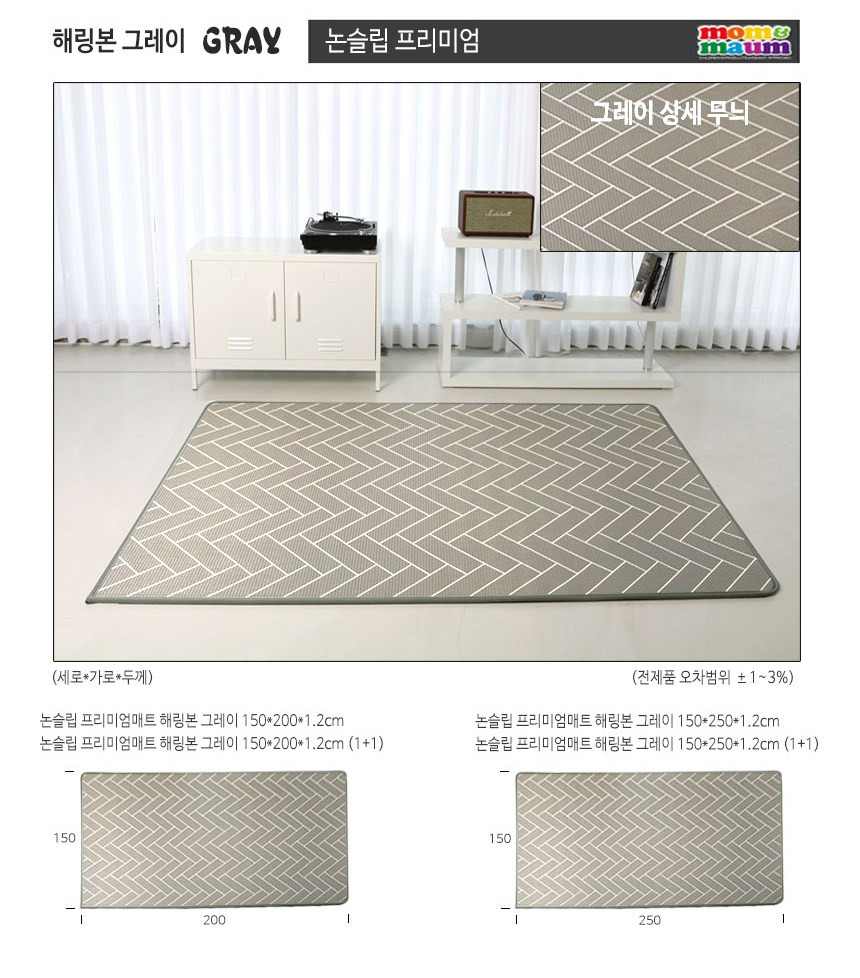 맘앤마음 논슬립 유아 놀이방매트, 헤링본 그레이