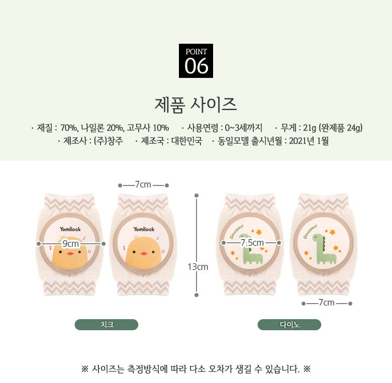 요미라 오가닉 무릎보호대 양쪽 세트, 치크, 다이노, 2세트