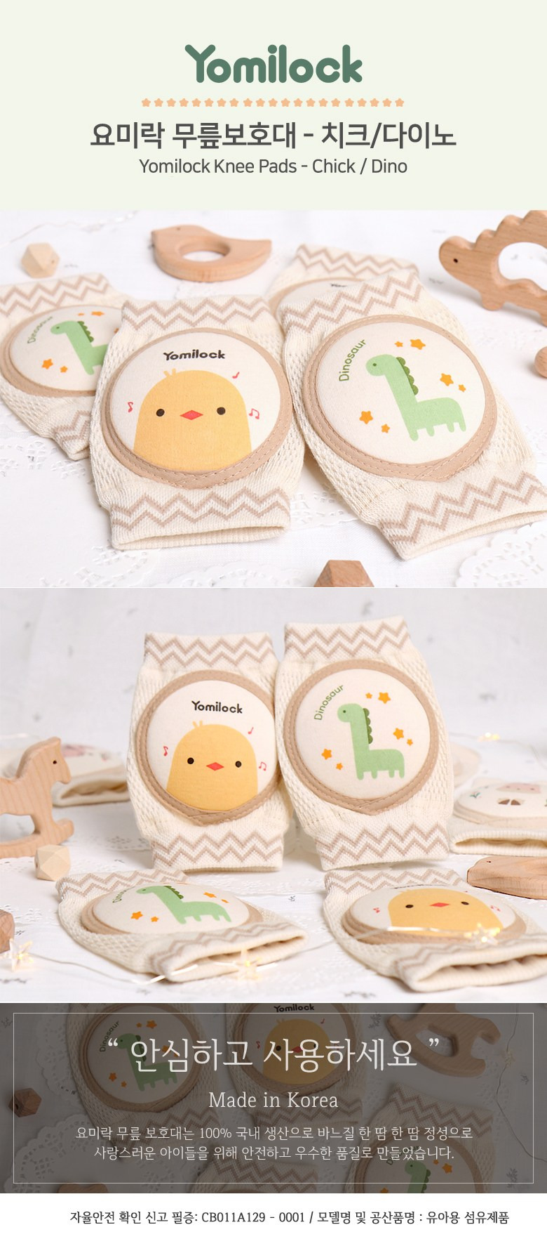 요미라 오가닉 무릎보호대 양쪽 세트, 치크, 1세트