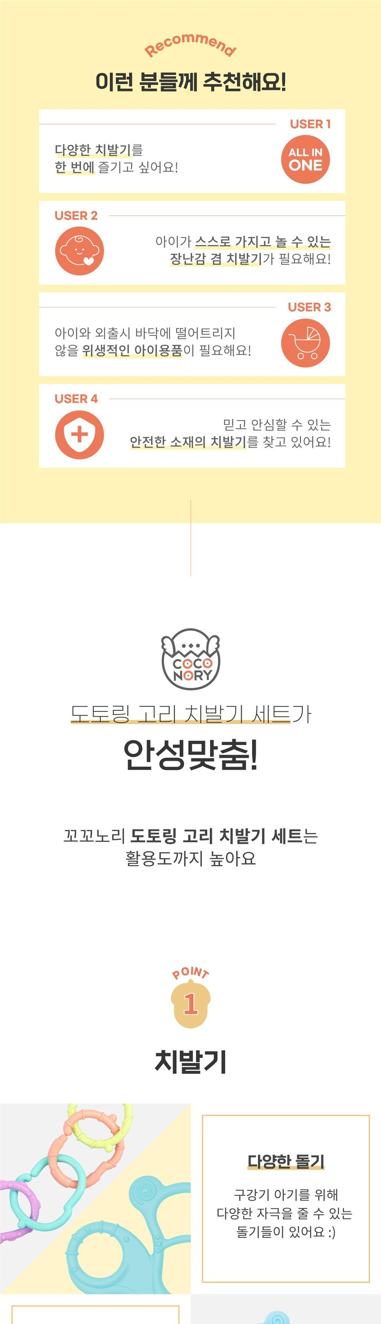 - 치발기가 포함되어 있어 아기가 치아가 나오는 시기에 유용함