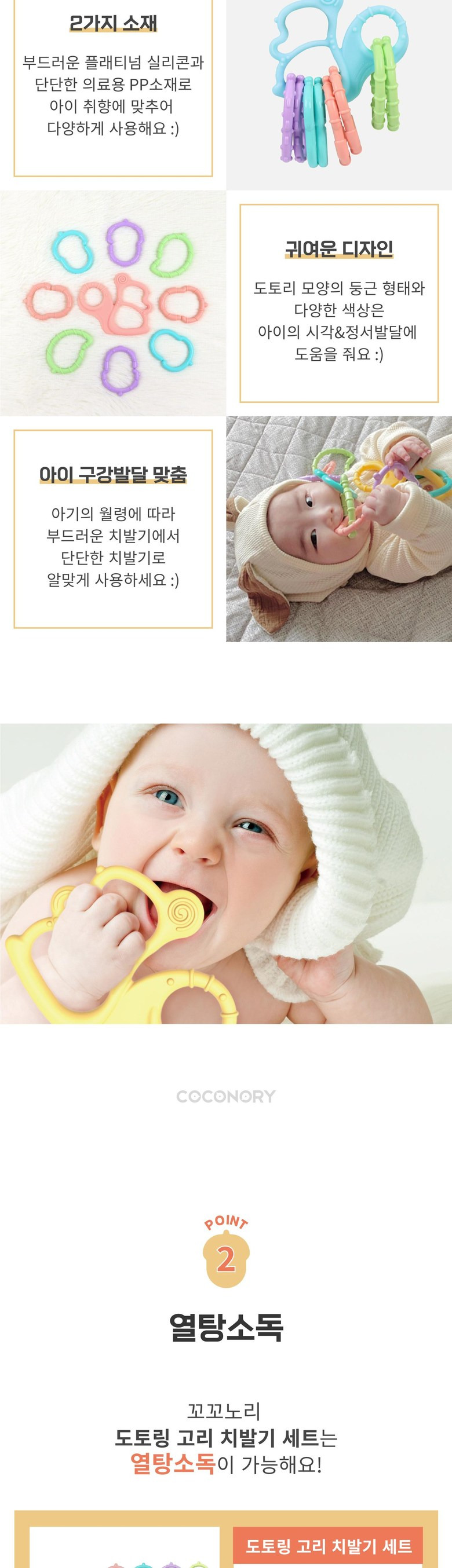 - 고리와 치발기 모두 안전한 소재로 제작되어 아기에게 부담이 없음