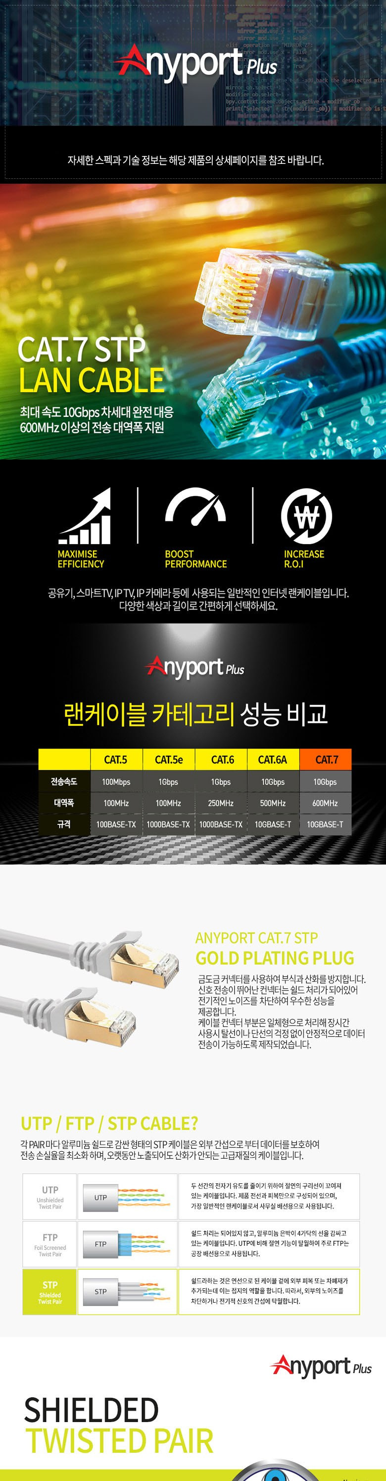 애니포트 플러스 프리미엄 고급형 랜선 STP 1M CAT7, 화이트, 1개