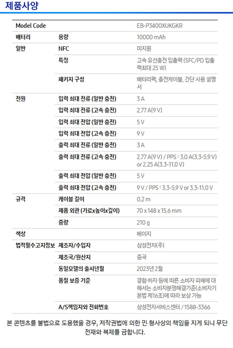 삼성 25W 초고속충전 PD 보조배터리 10000mAh EB-P3400 세트, 삼성 PD 1만 단품