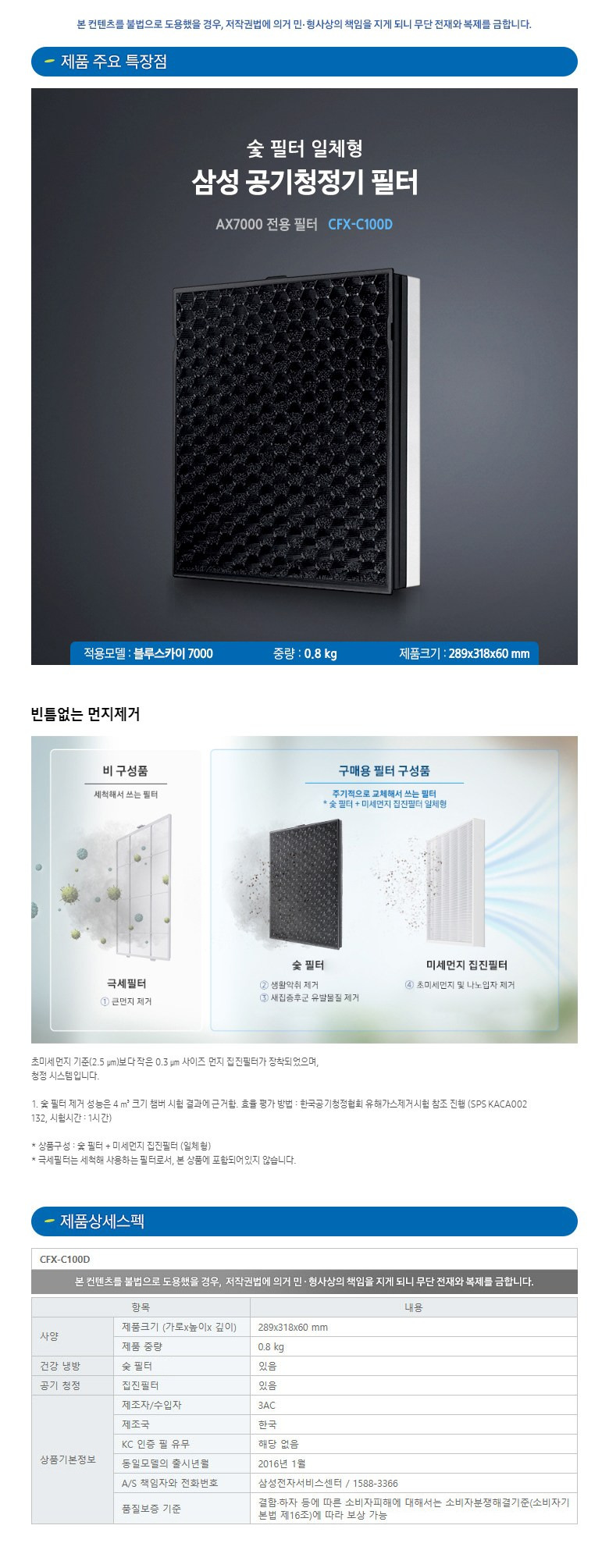 삼성전자 공기청정기 AX7000 전용 필터 CFX-C100D, 1개