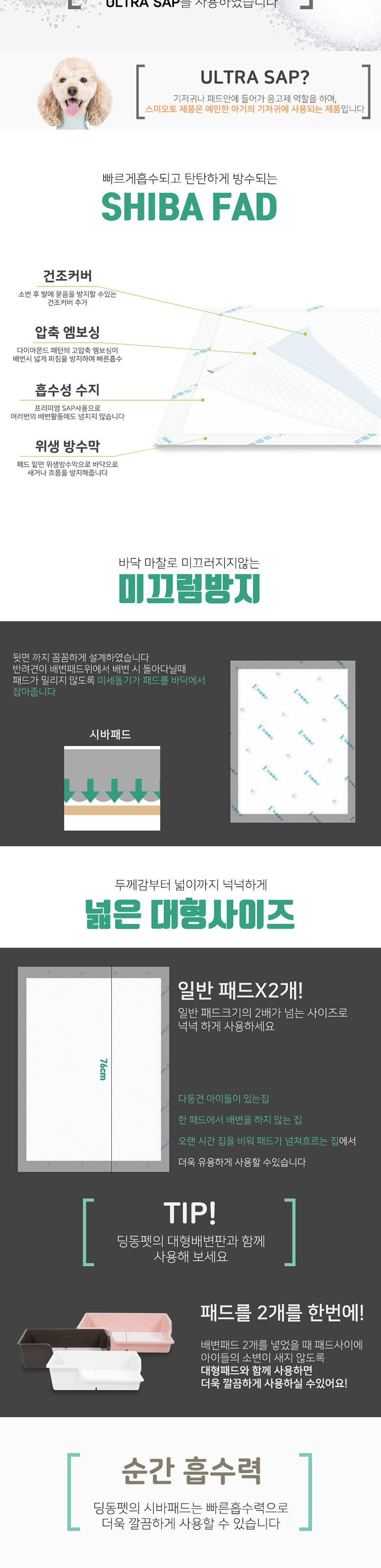 - 높은 흡수력을 보유해 소변이 빠르게 흡수됨