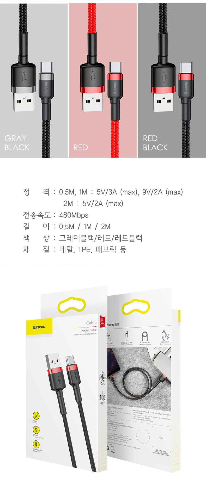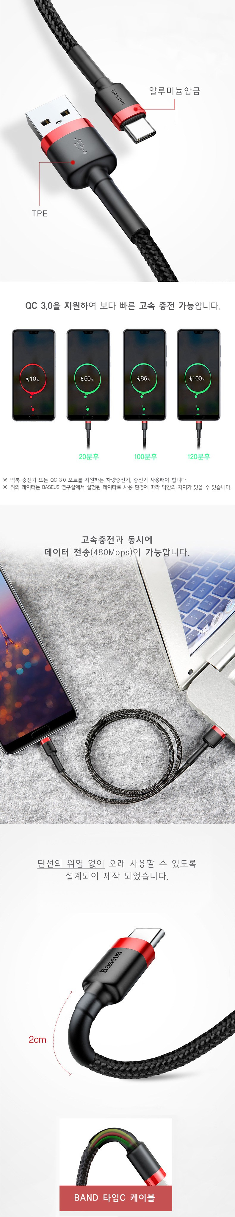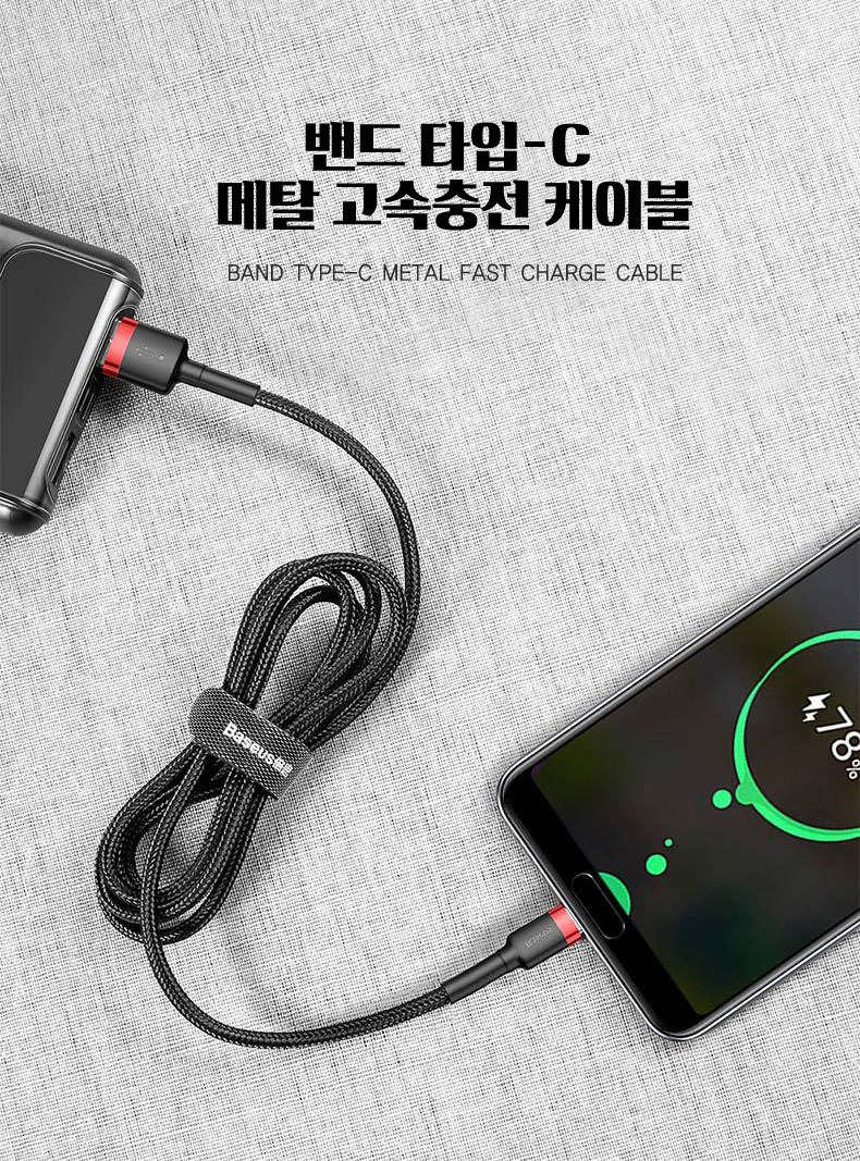 베이스어스 밴드 타입-C 메탈 고속충전 케이블, 2m, 그레이블랙, 1개