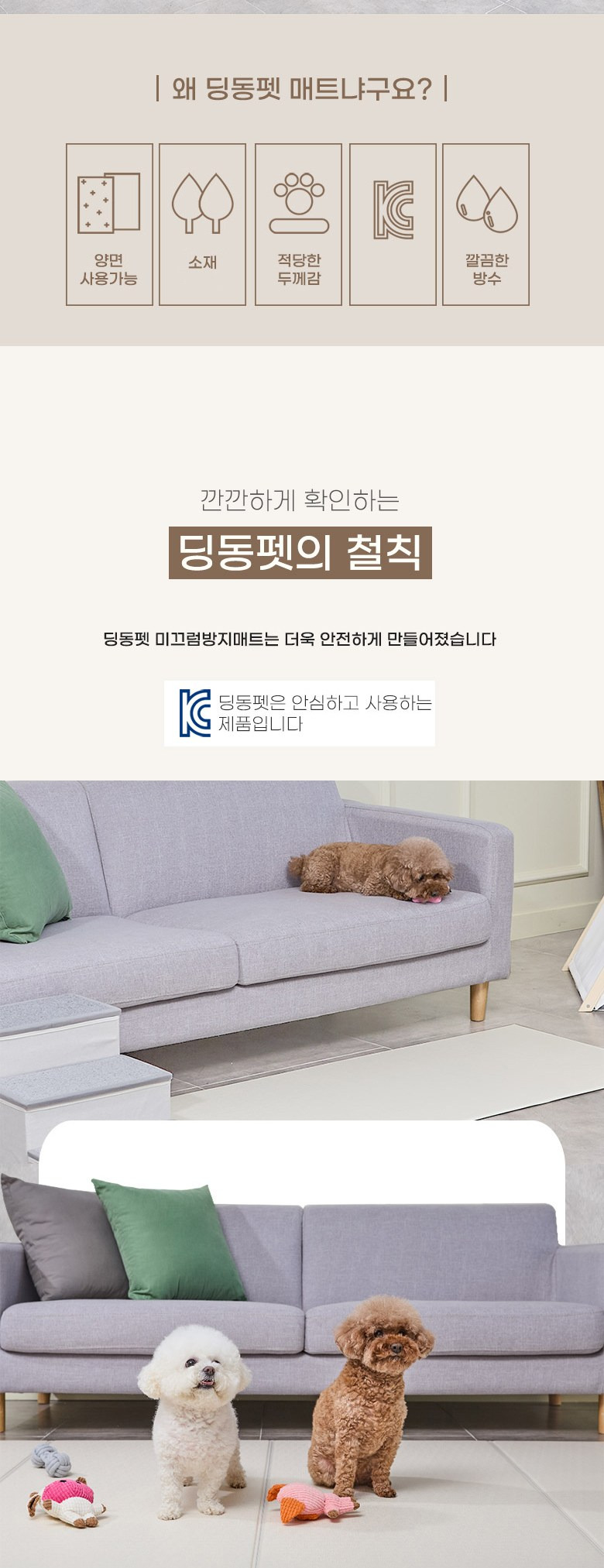 딩동펫 반려동물 방수 미끄럼방지 매트, 크림 베이지 + 그레이, 1개