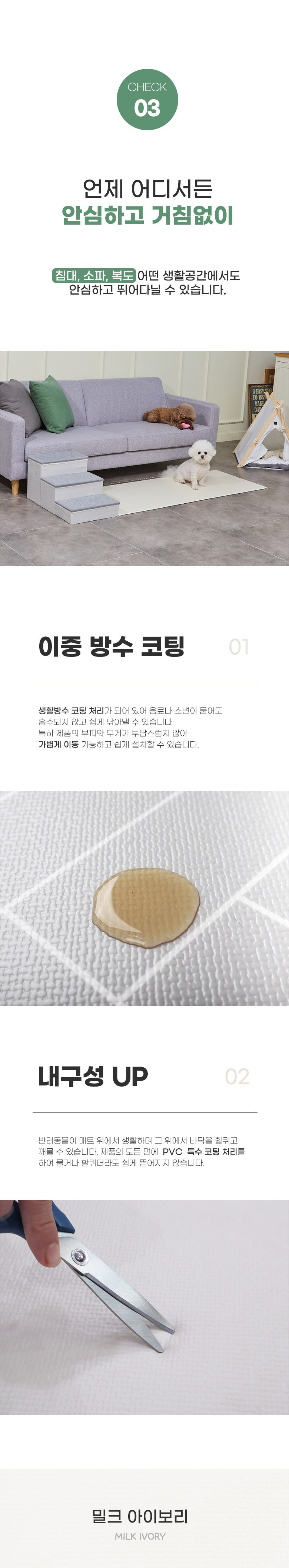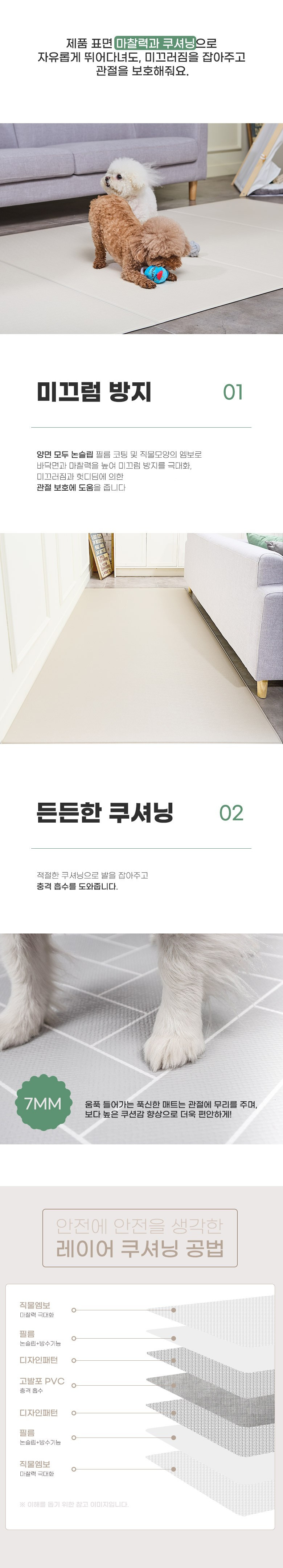 - 미끄럼 방지 기능이 뛰어남 - 반려동물이 뛰어다니면서도 안전하게 사용 가능함