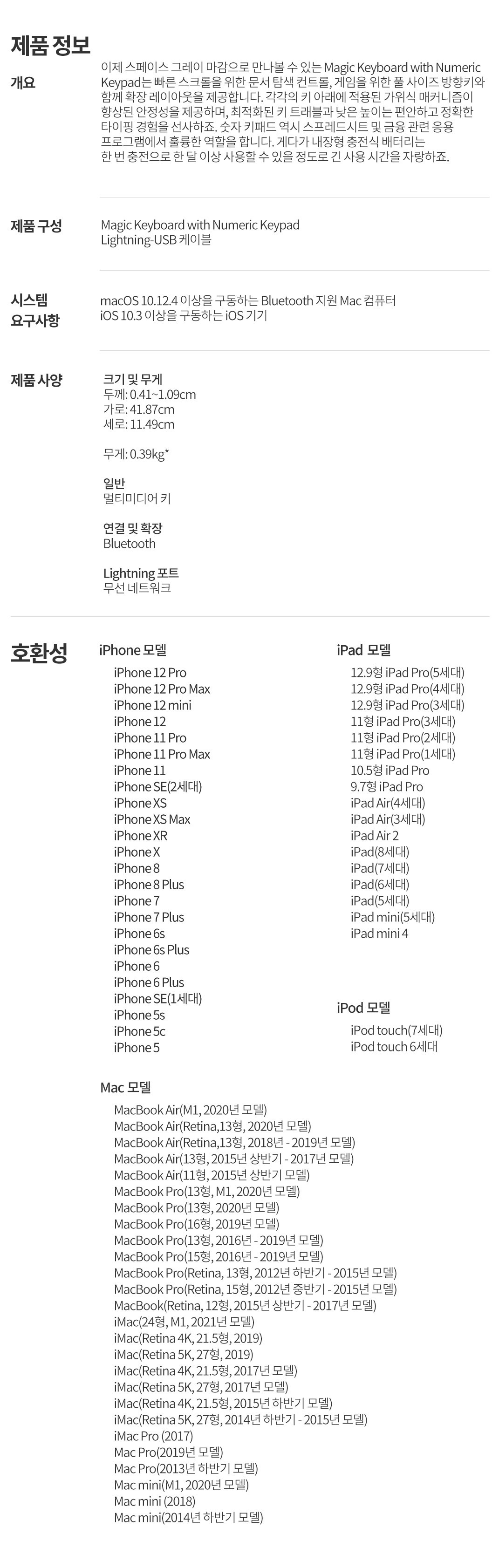 Apple 정품 매직 키보드 WITH NUMERIC KEYPAD, 실버, 영어, 일반형