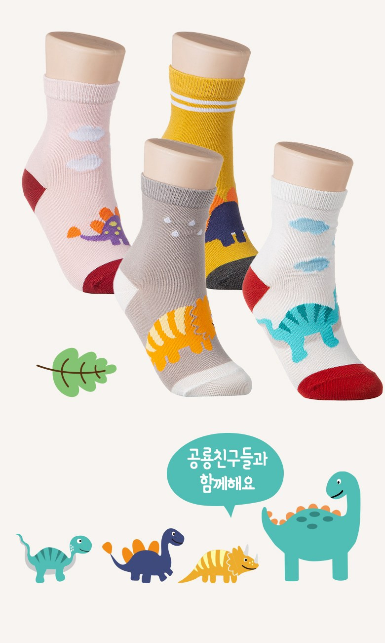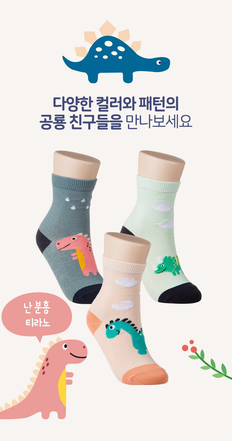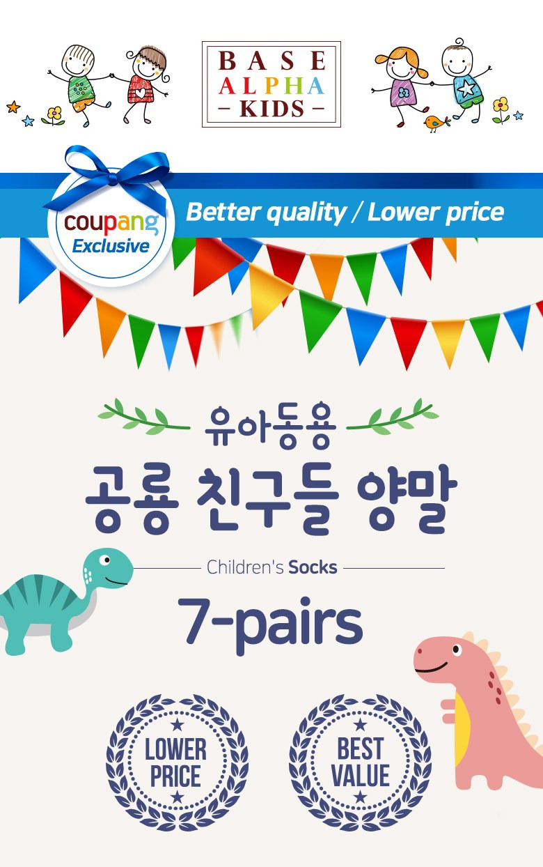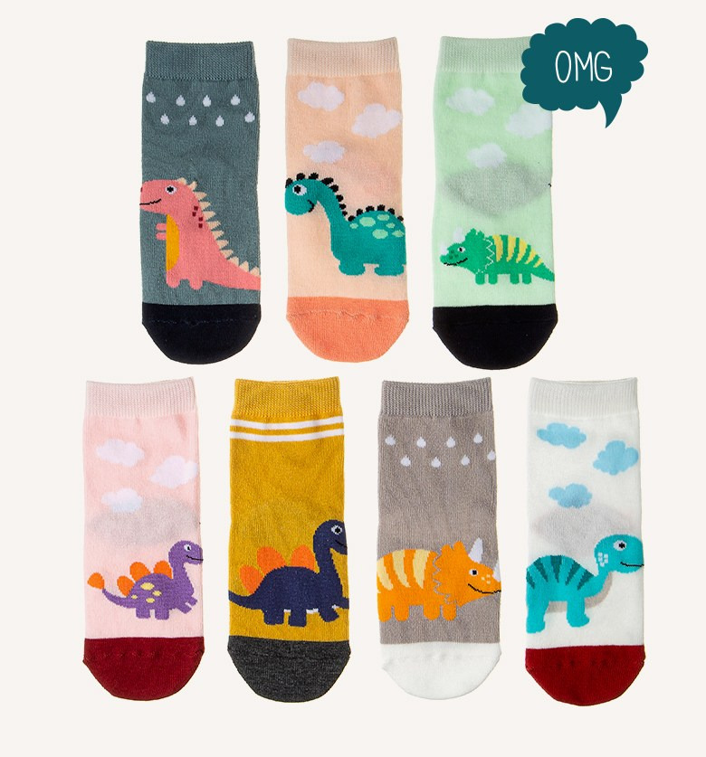 베이스알파에센셜 키즈 유아동용 공룡친구들 양말 7족 세트