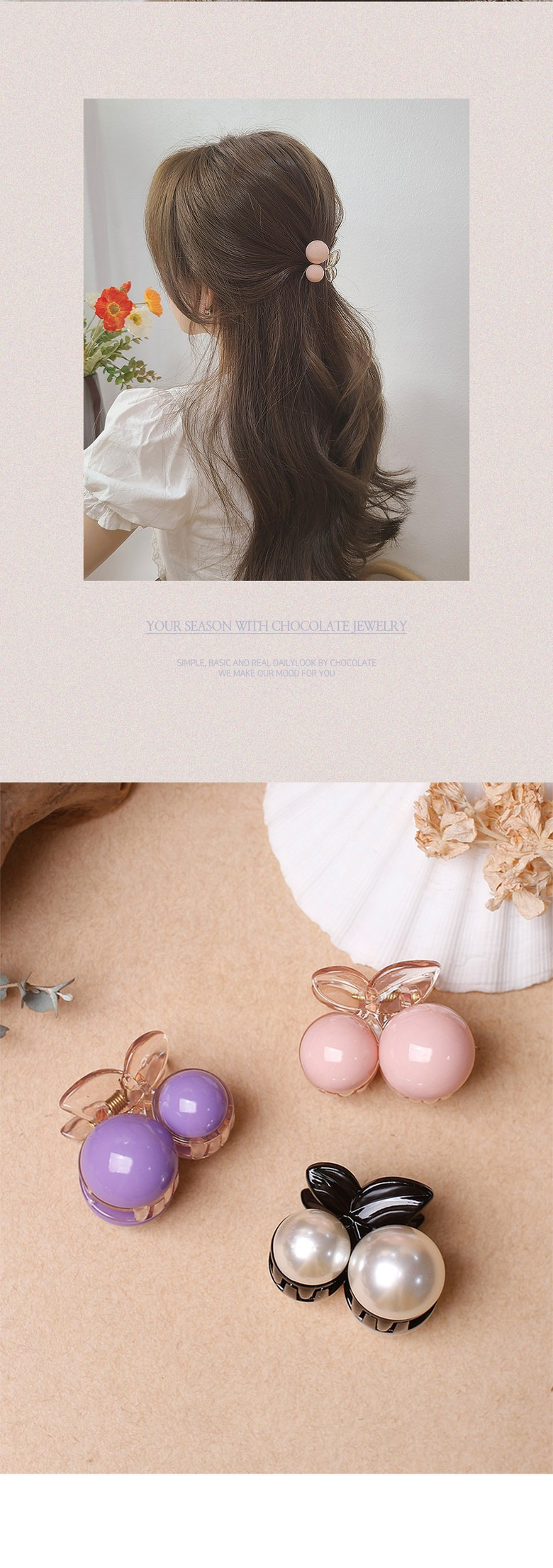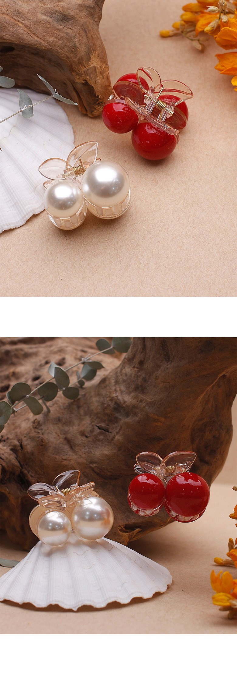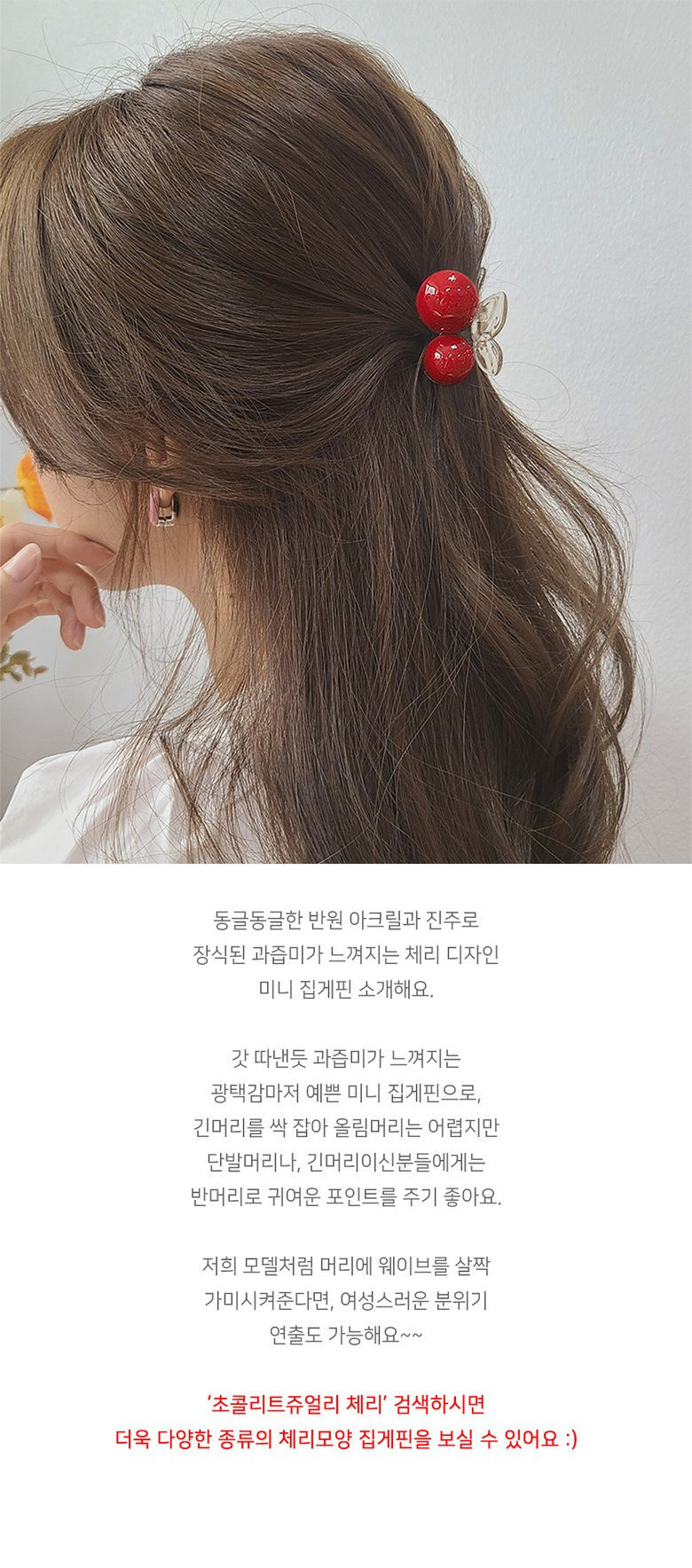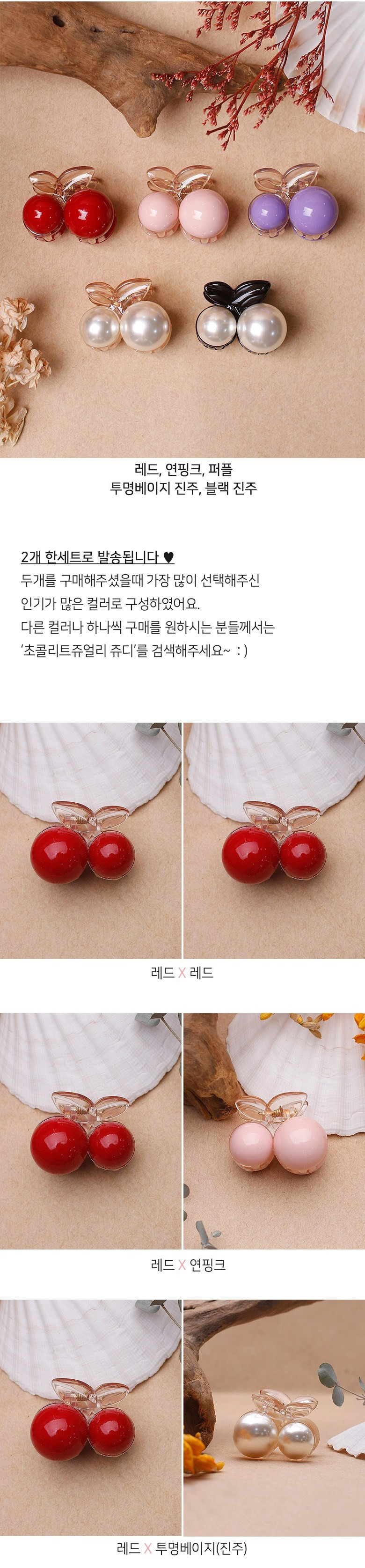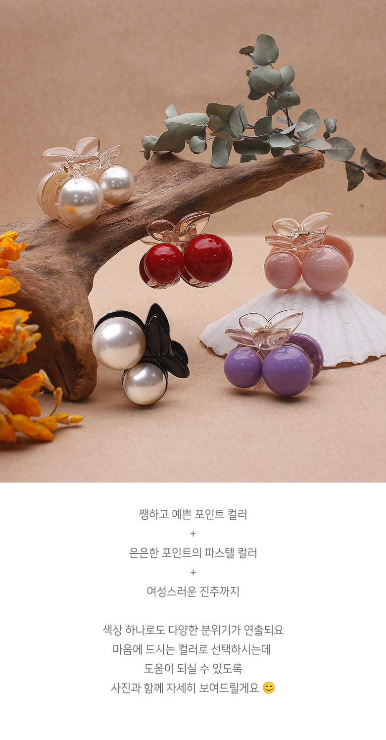 (초콜리트쥬얼리) 2개 세트 쥬디 앵두 체리 진주 비비드 미니 반머리 헤어 집게핀 5color