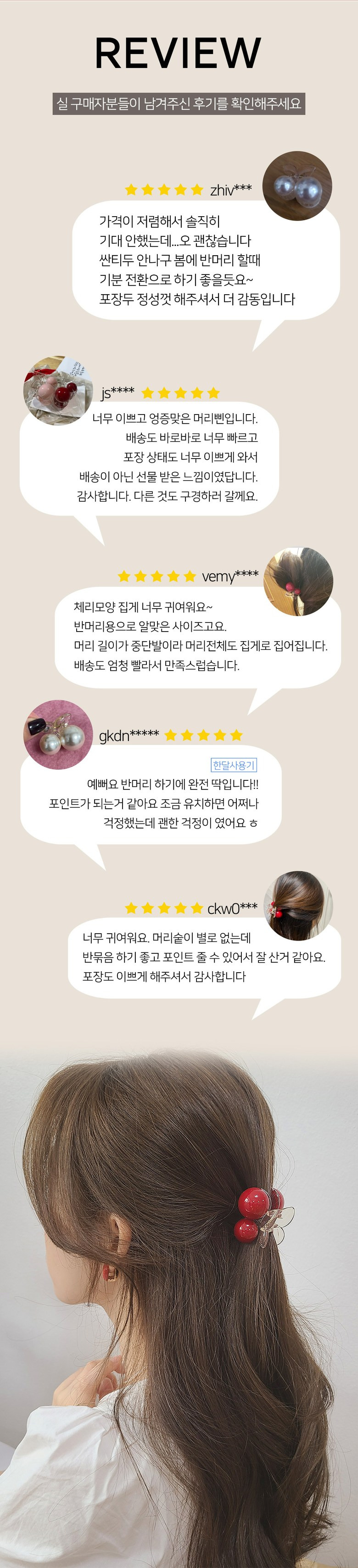 - 반묶음 머리에 적당한 사이즈로 잘 사용됨