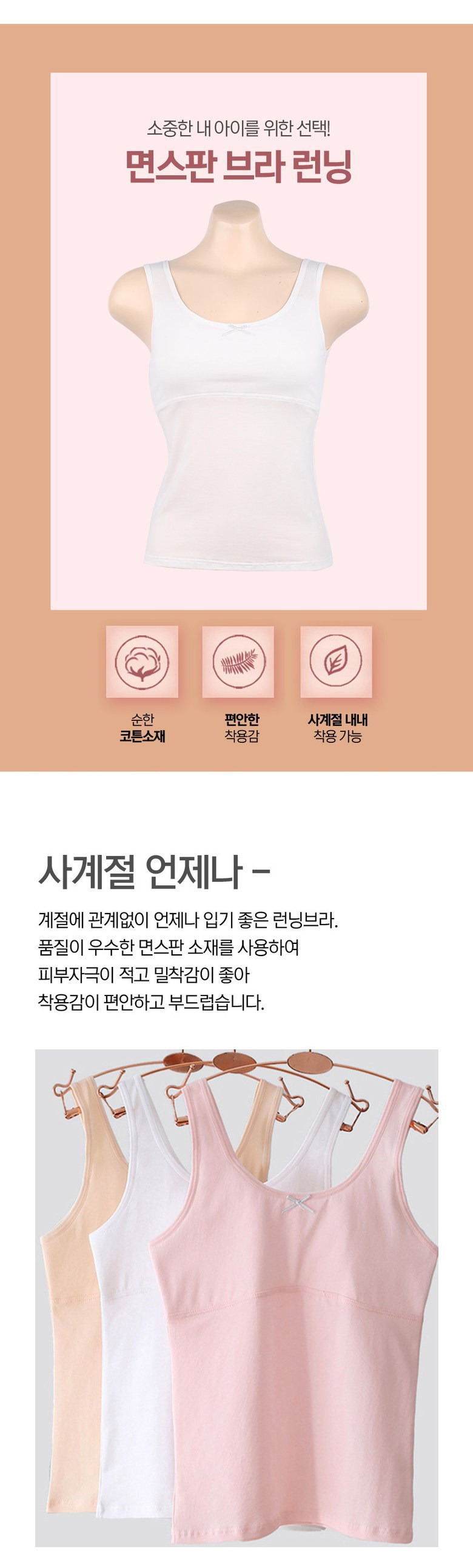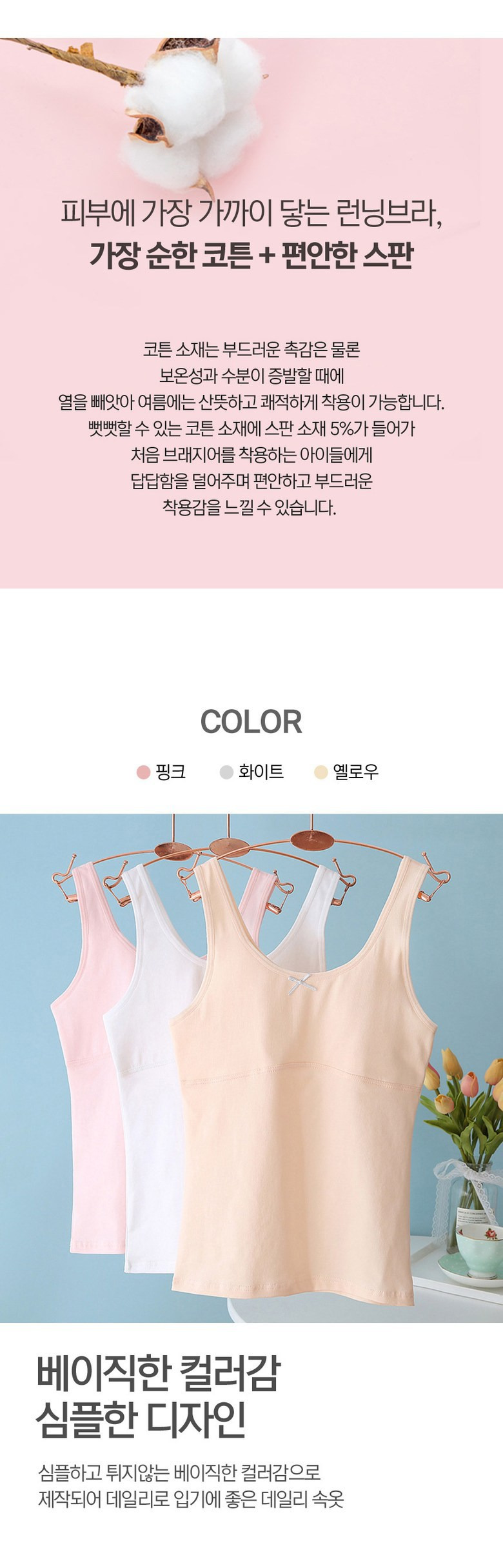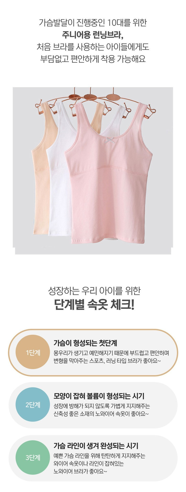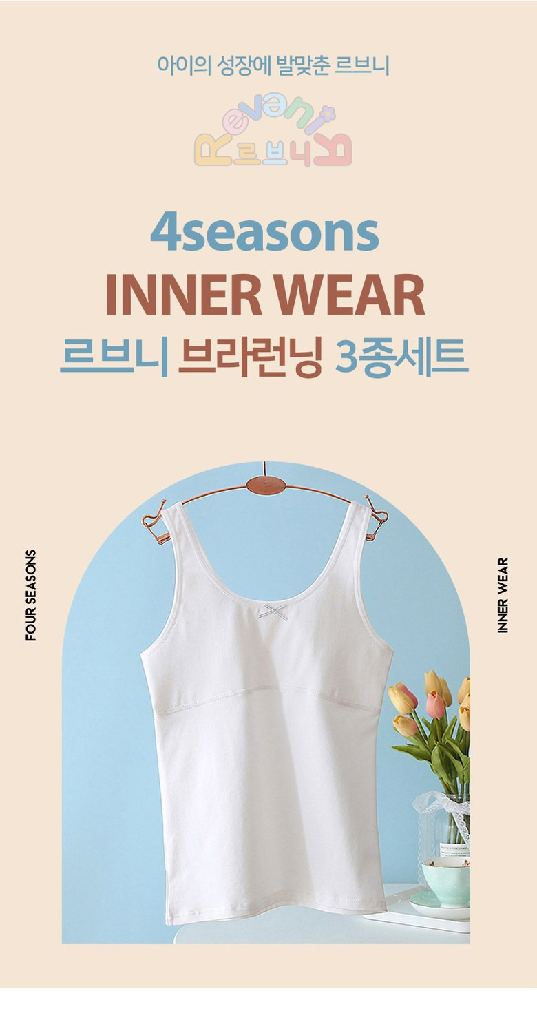 르브니 주니어 1단계 면스판 브라런닝 3종세트 사계절 이너 속옷 캔디