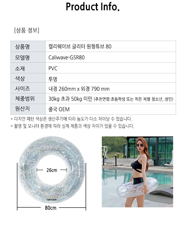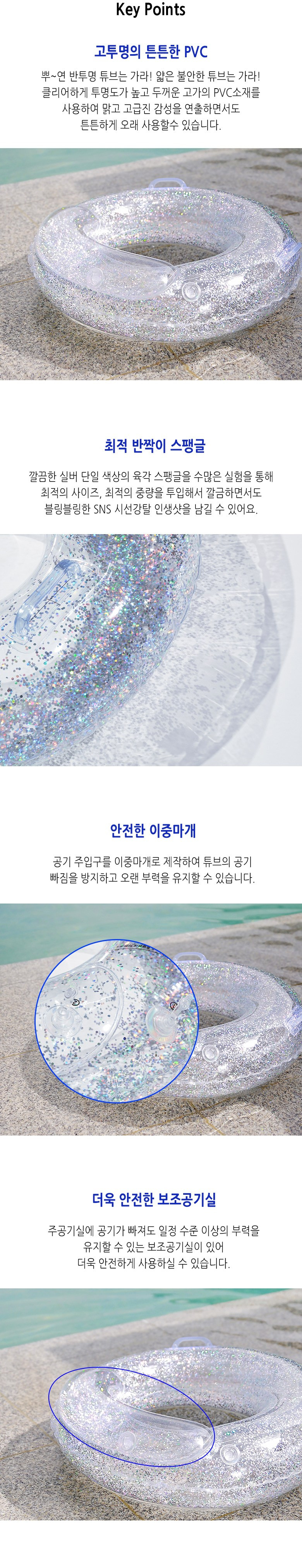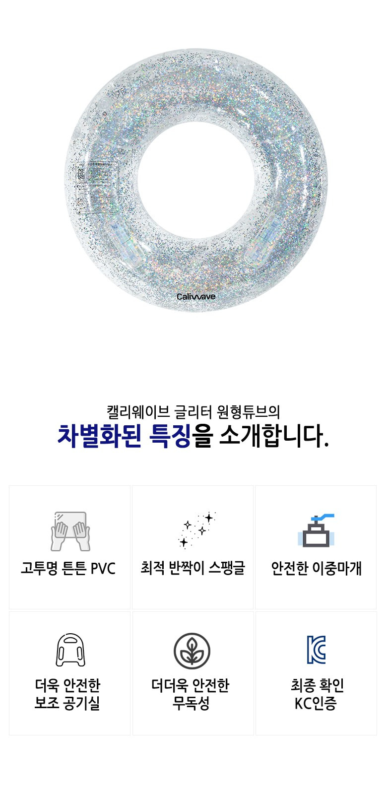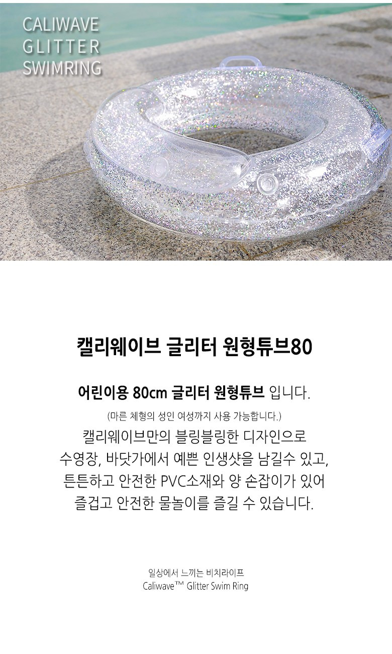 캘리웨이브 투명 반짝이 튜브 80cm GSR80 어린이 아동 키즈 청소년 글리터 스팽글 원형 감성 여성 여자 물놀이 튜브, 실버, 1개