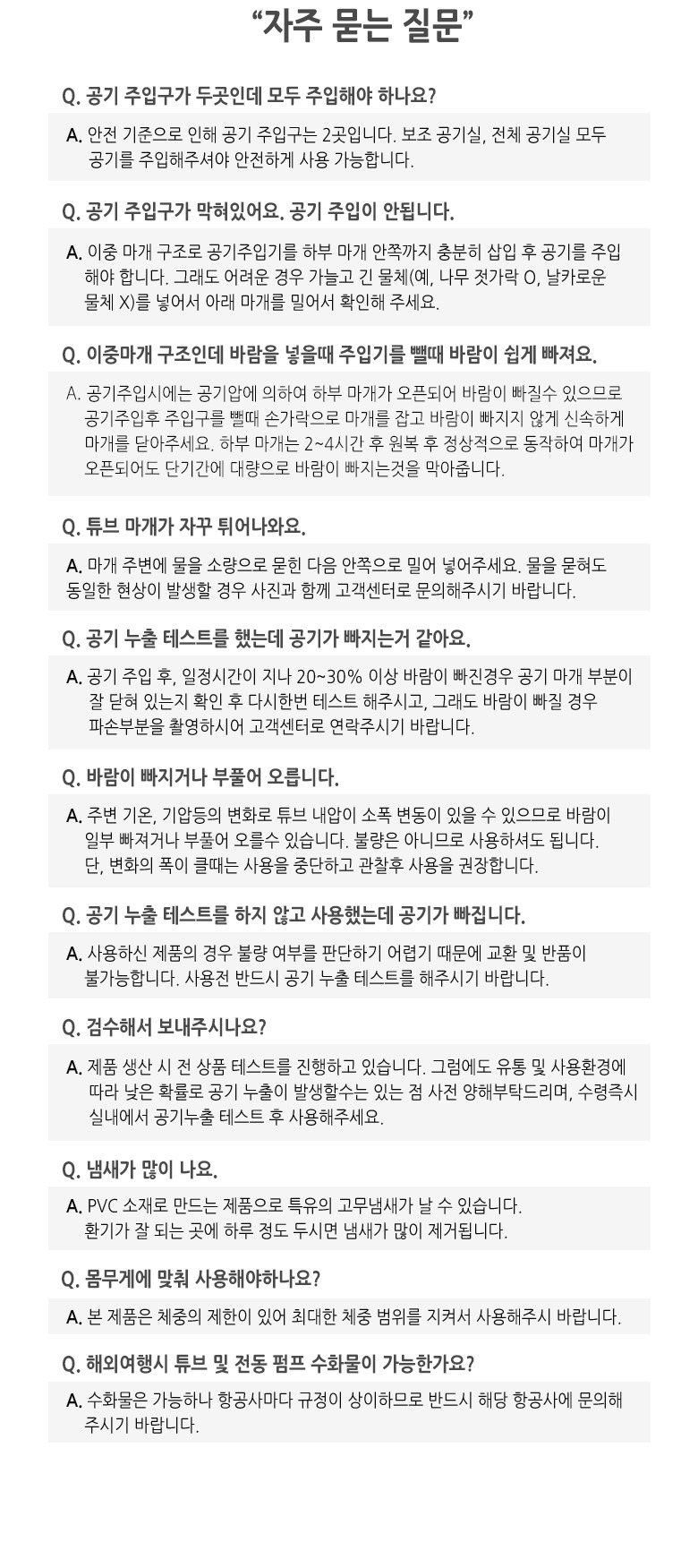 - 바람 넣을 때 약간의 냄새가 발생해 베란다에서 건조해야 한다