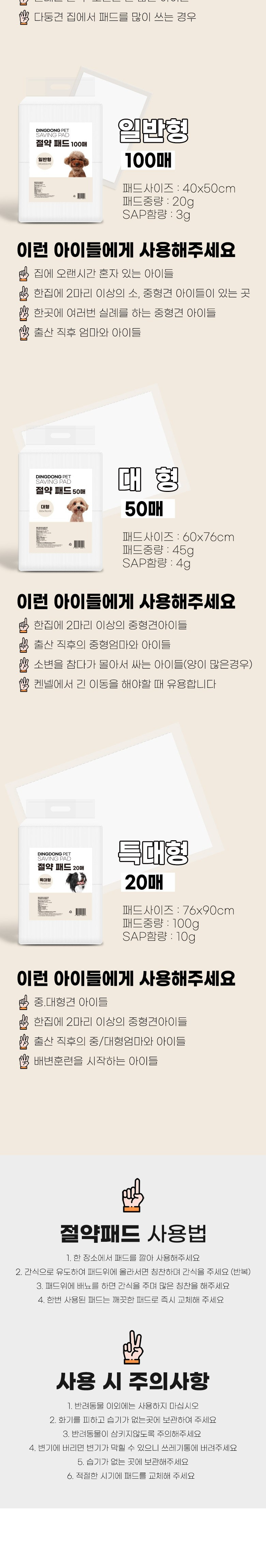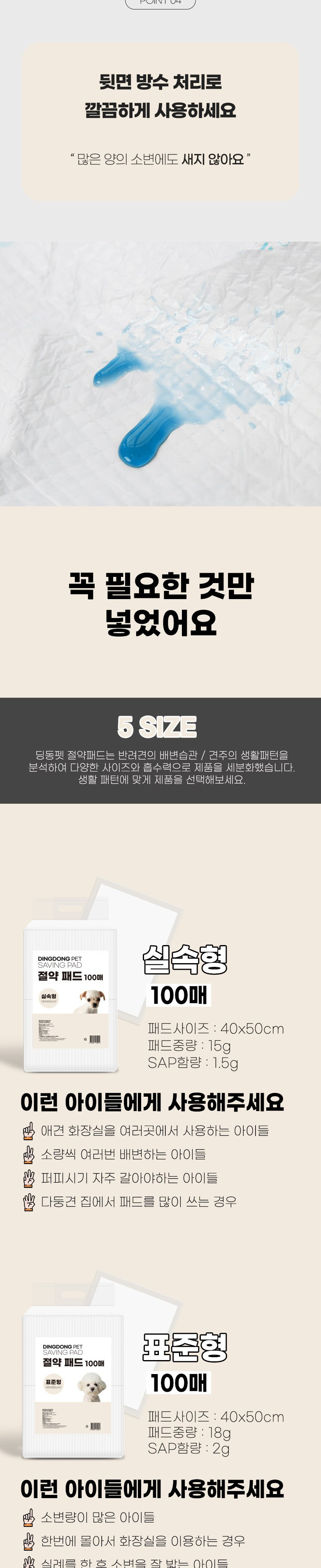 - 흡수력이 뛰어나 소변이 빠르게 흡수됨