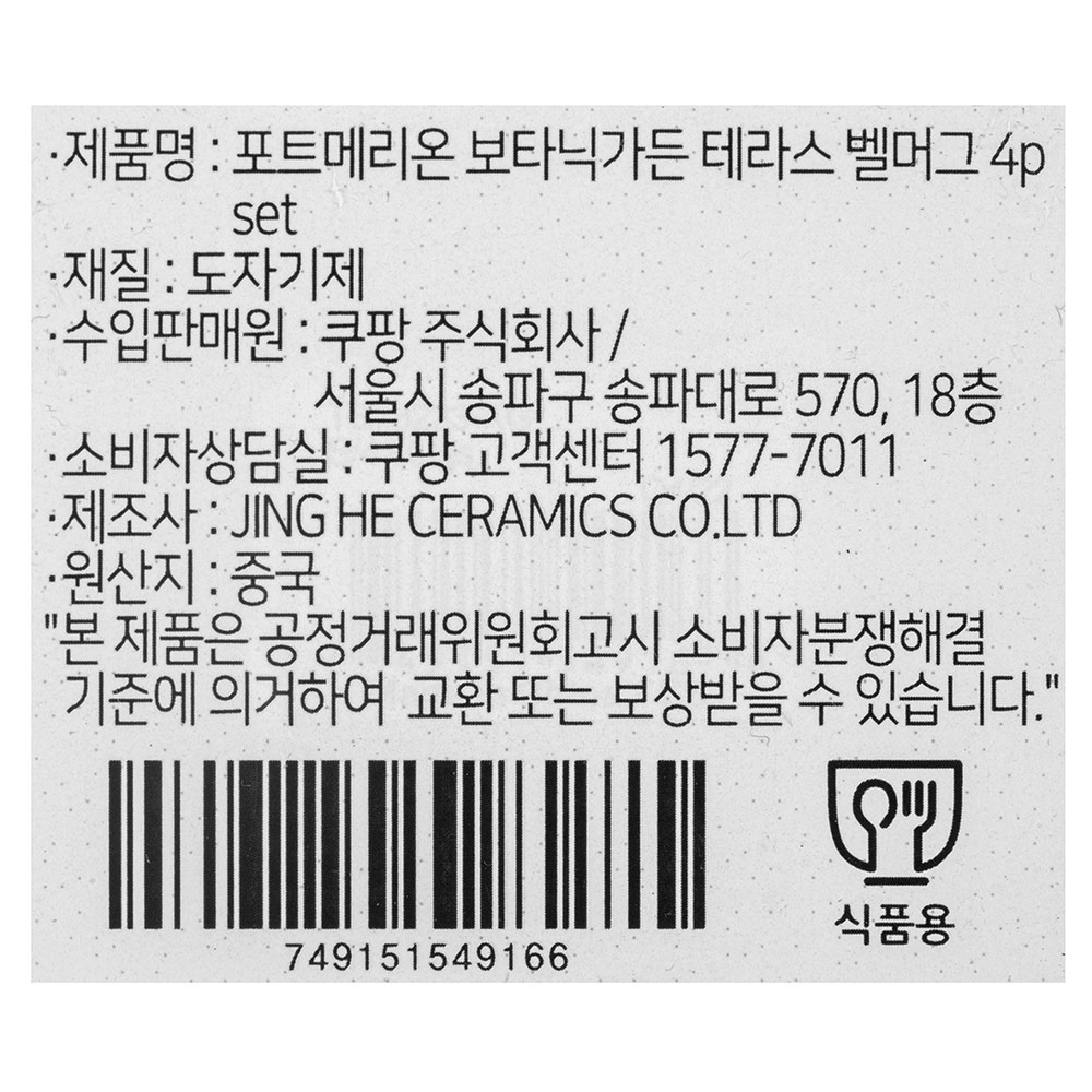 포트메리온 보타닉가든 테라스 벨머그 4p, 혼합색상, 1세트