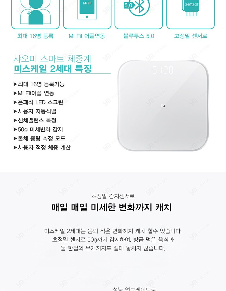 - Mi Fit 어플과 연동되어 체중 기록을 관리하고 그래프로 확인할 수 있음
