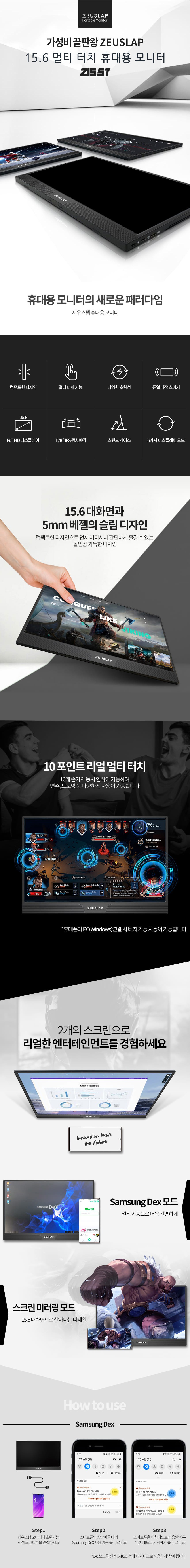 [쿠팡수입] 제우스랩 39.6cm FHD 리얼터치 휴대용 모니터 블랙, Z15ST