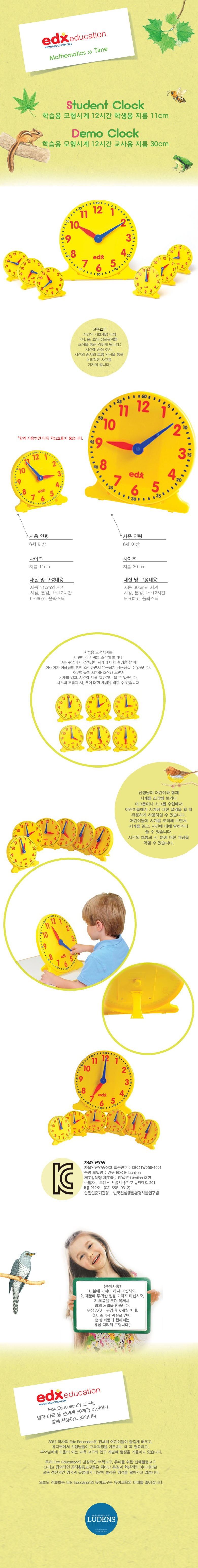 이디엑스 학습용완구 모형시계 12시간 학생용 지름 11cm, 1개