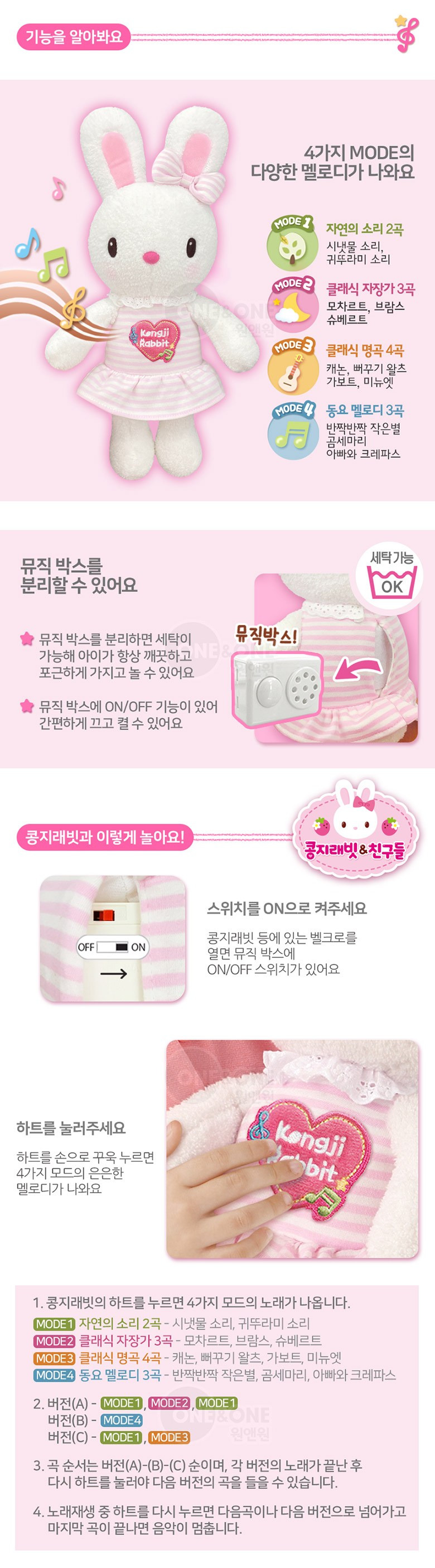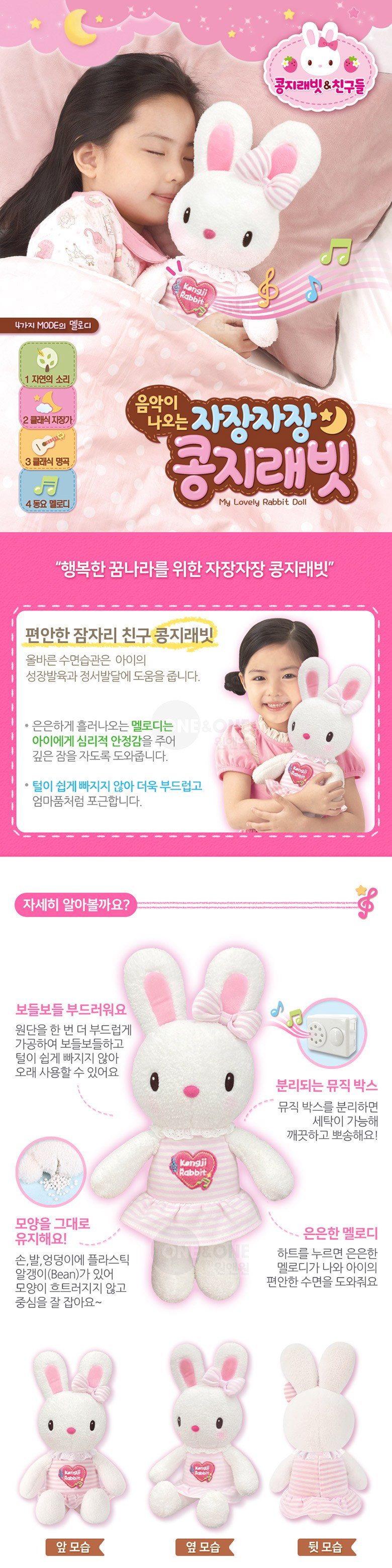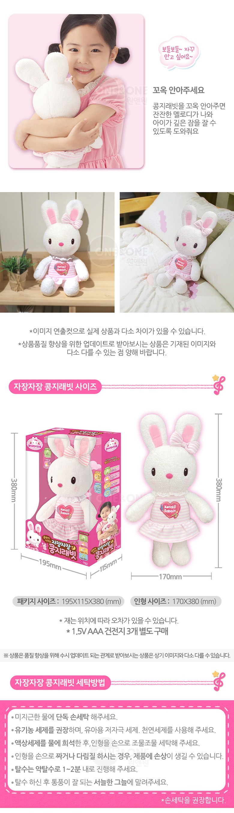 원앤원 음악이 나오는 자장자장 콩지래빗 애착인형, 380mm, 혼합색상
