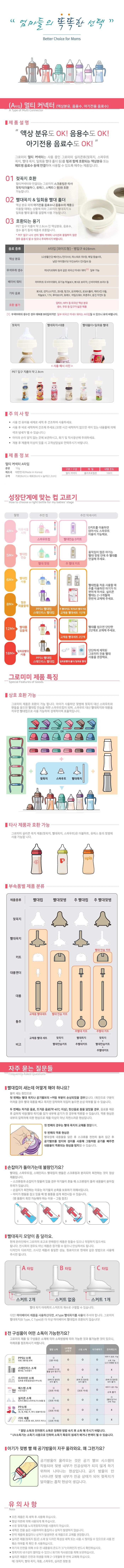 - 액상분유와 호환되는 다양한 젖꼭지와 잘 맞음