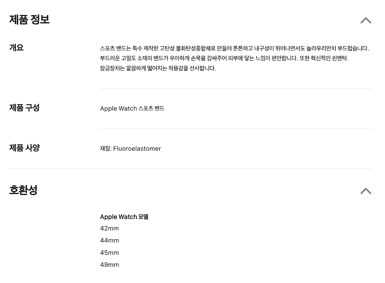 - 물에 자주 닿는 환경에서 착용할 경우 스포츠 루프가 더 적합할 수 있음
