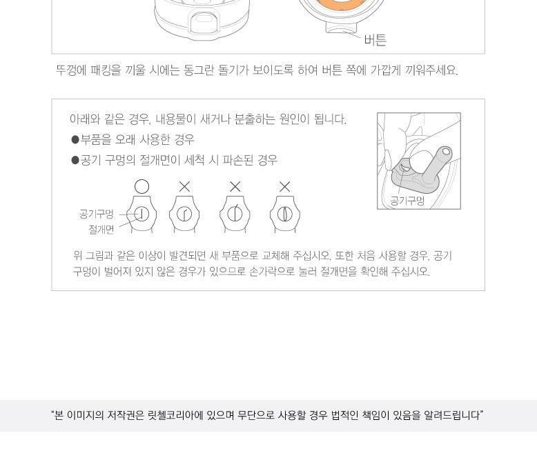 - 물새는 문제 점검: 뚜껑이 제대로 닫히는지 확인하여 물이 새지 않는지 점검