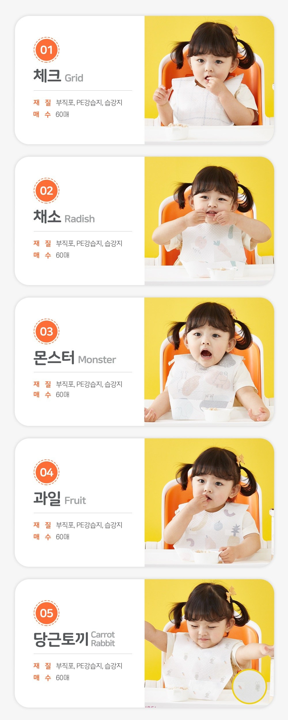 아가짱 일회용턱받이, 과일, 60개