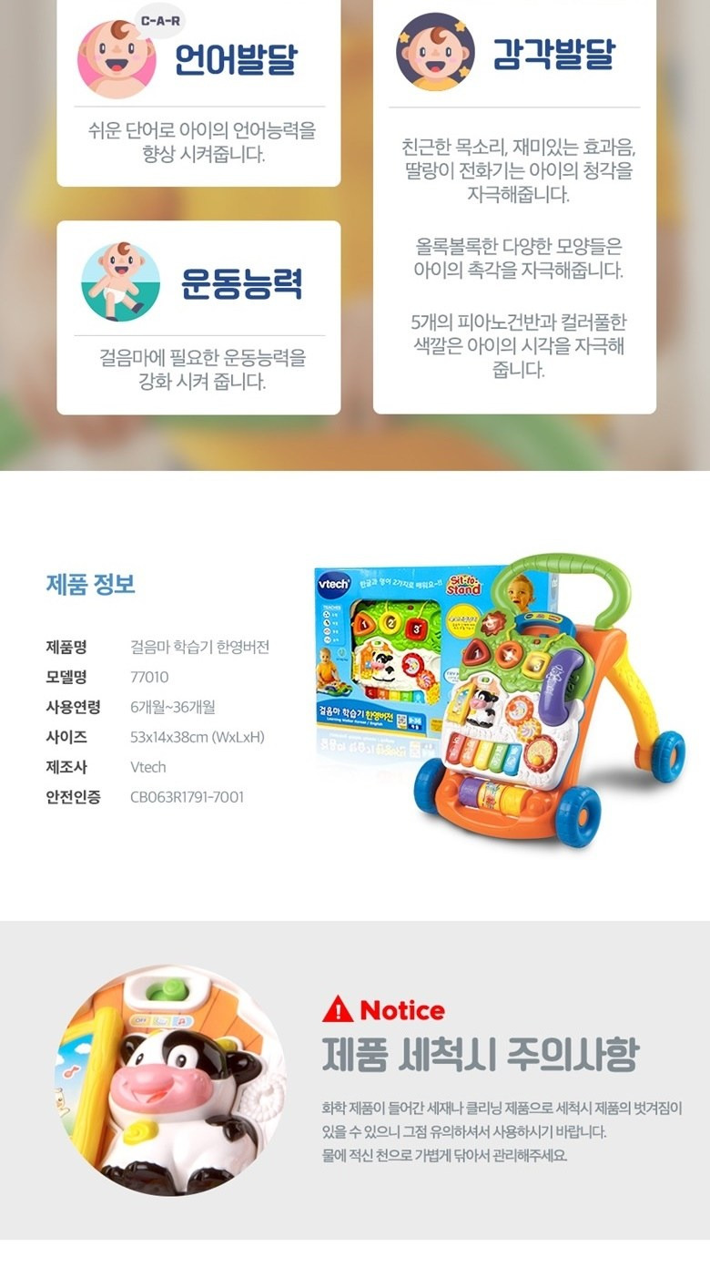- 안전한 디자인: 아기가 잡고 서 있을 때 안정감을 제공하여 안전하게 사용할 수 있음