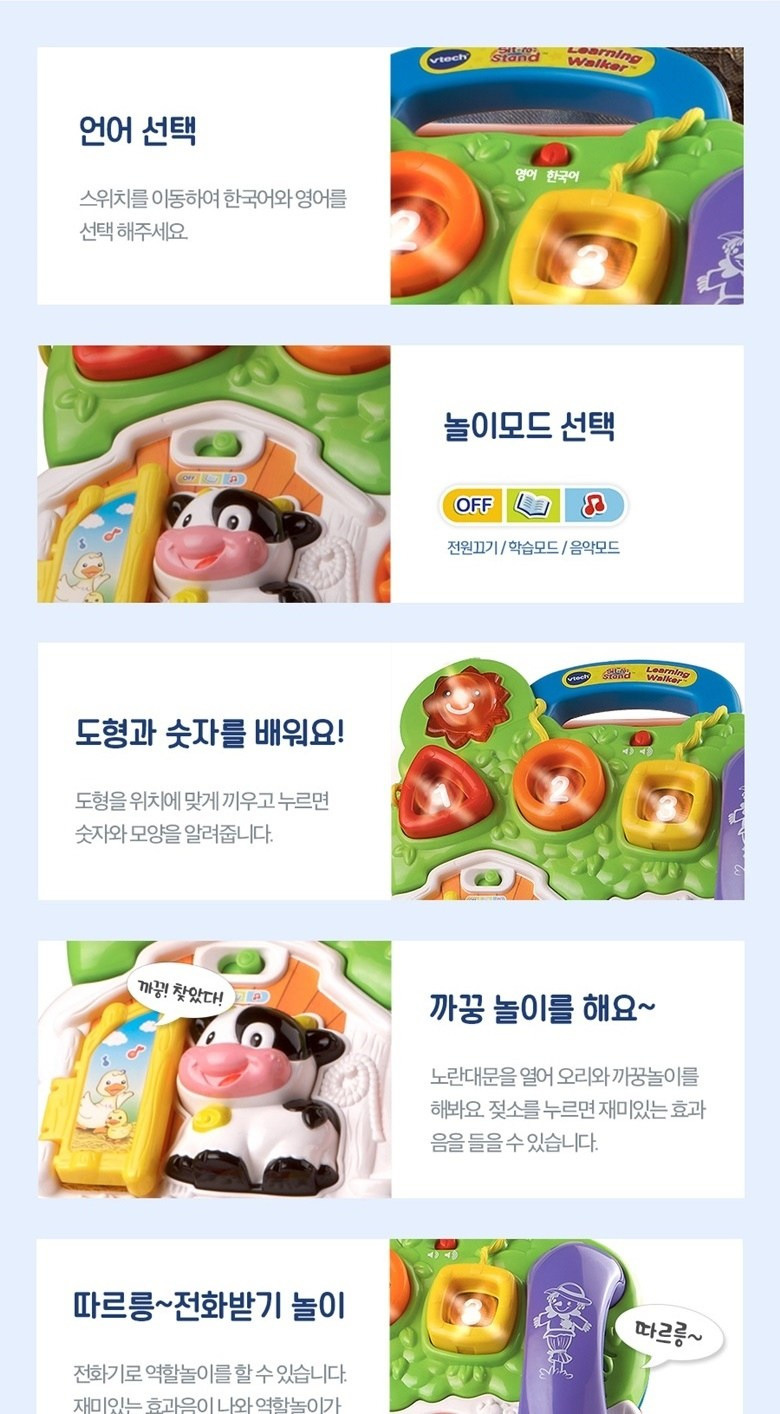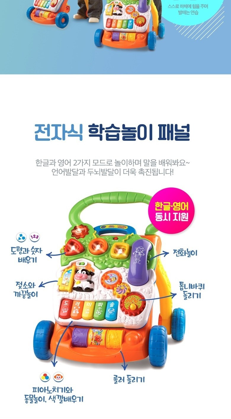 - 다양한 기능: 학습놀이판과 걸음마 보조기 기능이 함께 있어 다양한 놀이가 가능함