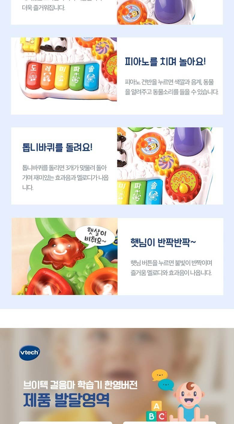 - 재미있는 소리: 여러 멜로디와 동물 소리가 나와 아기의 호기심을 자극함