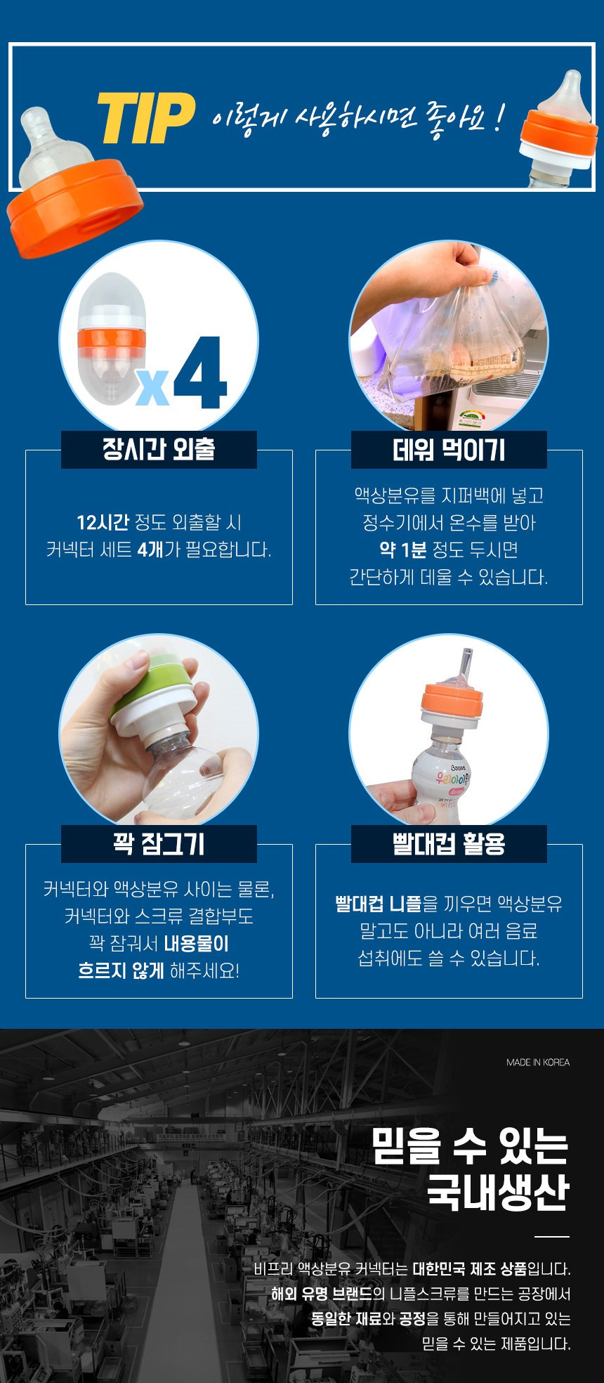 - 편리한 사용: 액상분유와 기존 젖꼭지를 연결하여 쉽게 사용할 수 있음