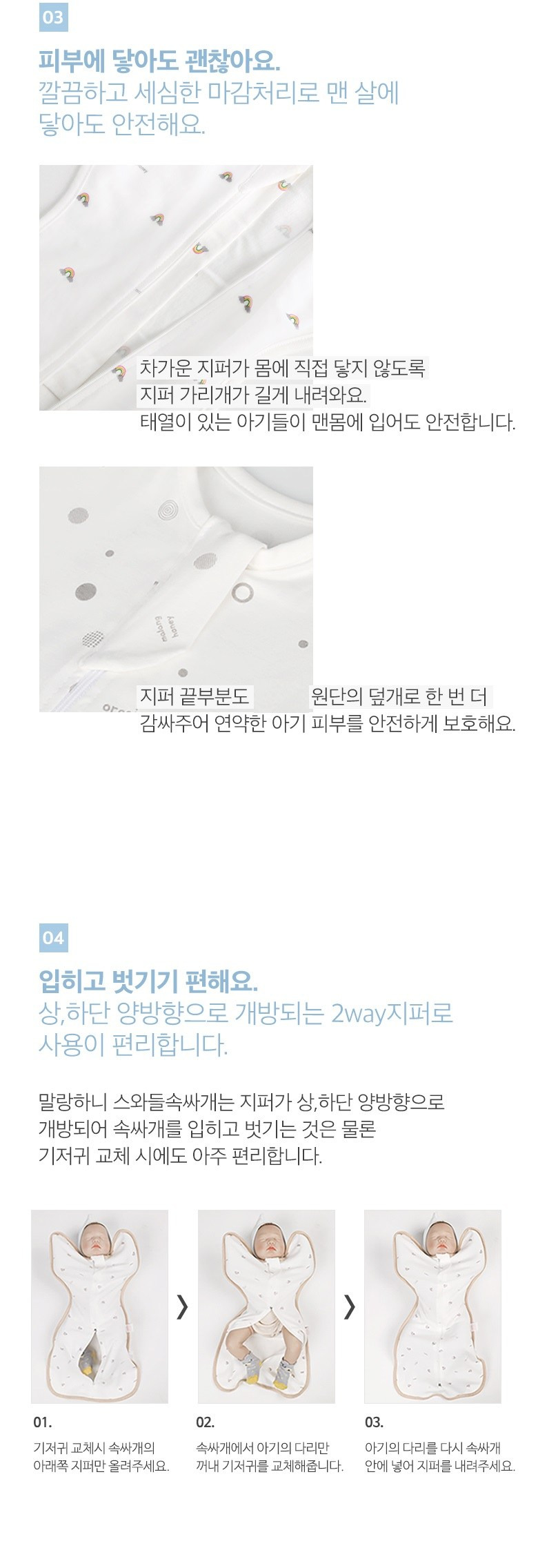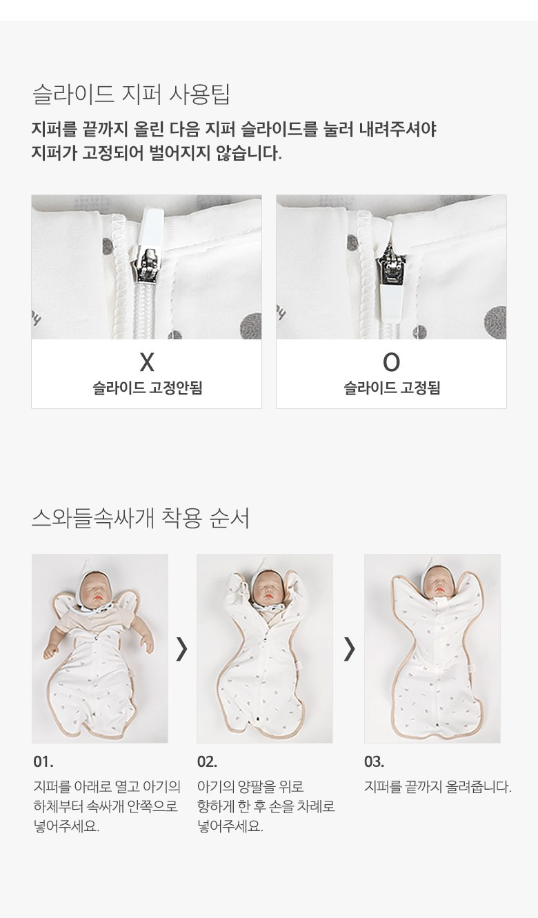 - 안정감 제공: 팔 움직임을 고정해 아기가 놀라지 않음
