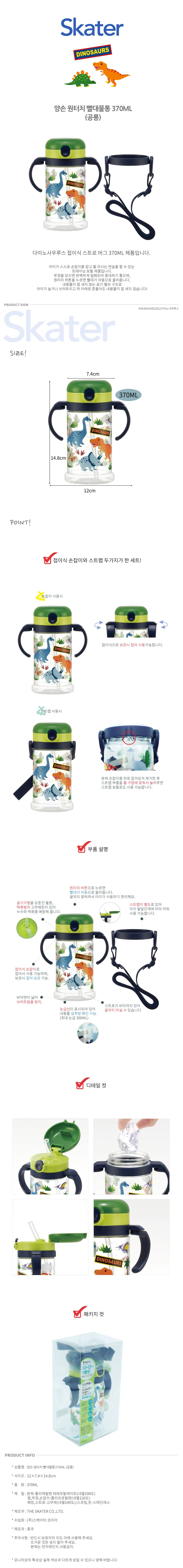 스케이터 양손 원터치 빨대 물통 370ml KSHW2N, 공룡, 1개 핫딜 최저가 비교 기록