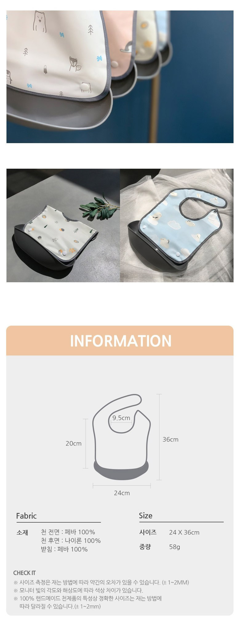 - 간편한 세척: 방수천과 플라스틱 받침이 분리되어 세척이 쉬움