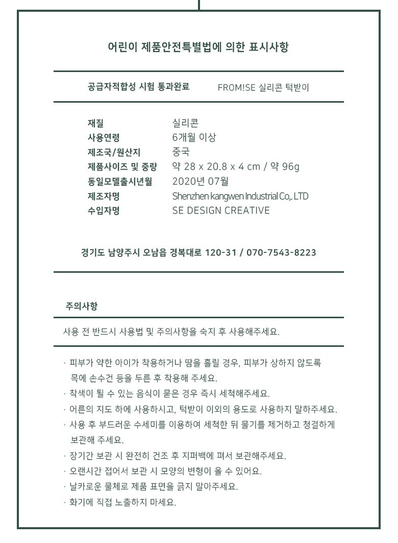 - 내구성 테스트: 다른 턱받이와 비교해 내구성을 확인해 볼 필요가 있음