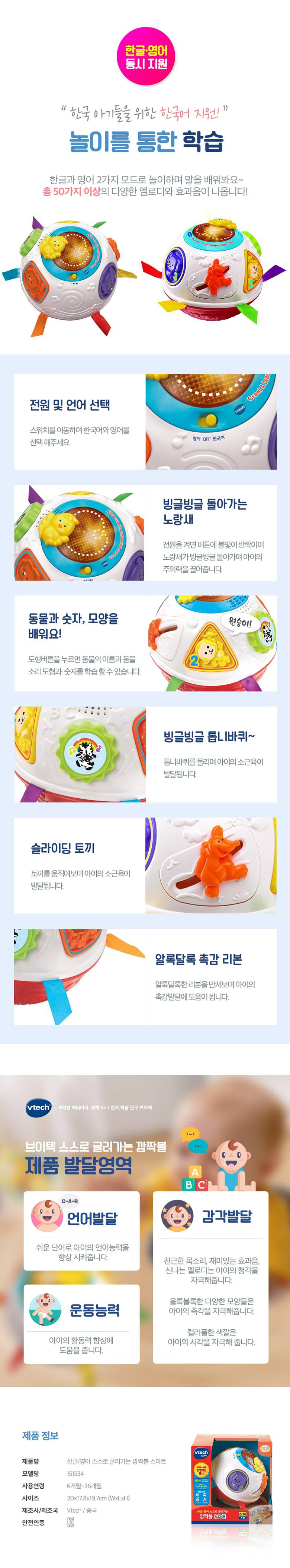 브이텍 한글 영어 스스로 굴러가는 깜짝볼 스마트 151534, 혼합 색상 핫딜 최저가 비교 기록